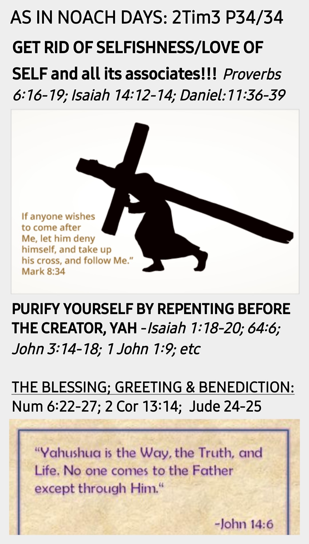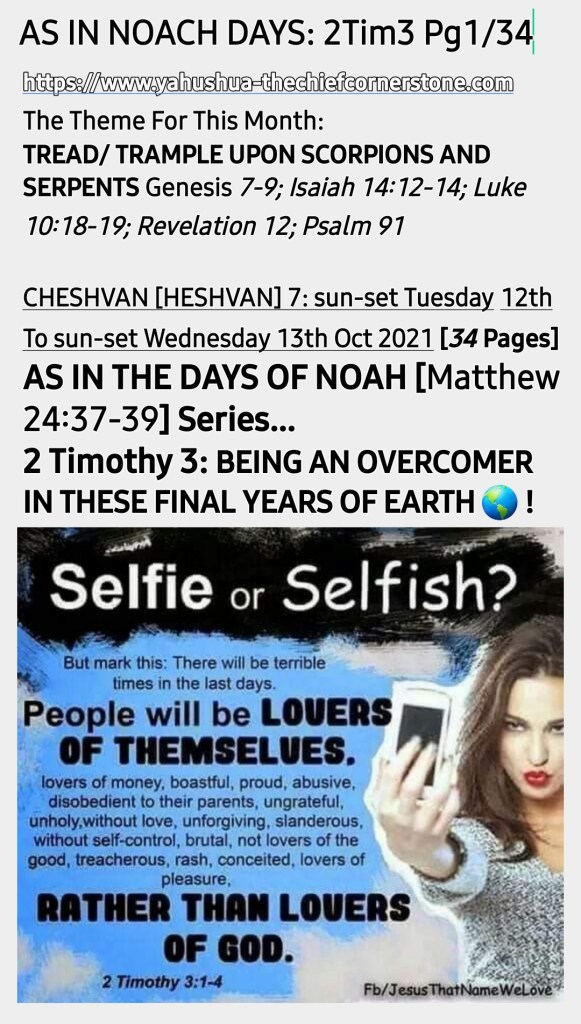 *2 Timothy 3: PUT OFF or GET RID OF SELFISHNESS/SELFIE/LOVE OF SELF/SELF-CENTEREDNESS and SELF EXALTATION plus ALL ITS ASSOCIATES! …As In Days Of Noach [Matthew 24:37-39] 12th-13th October 2021*
