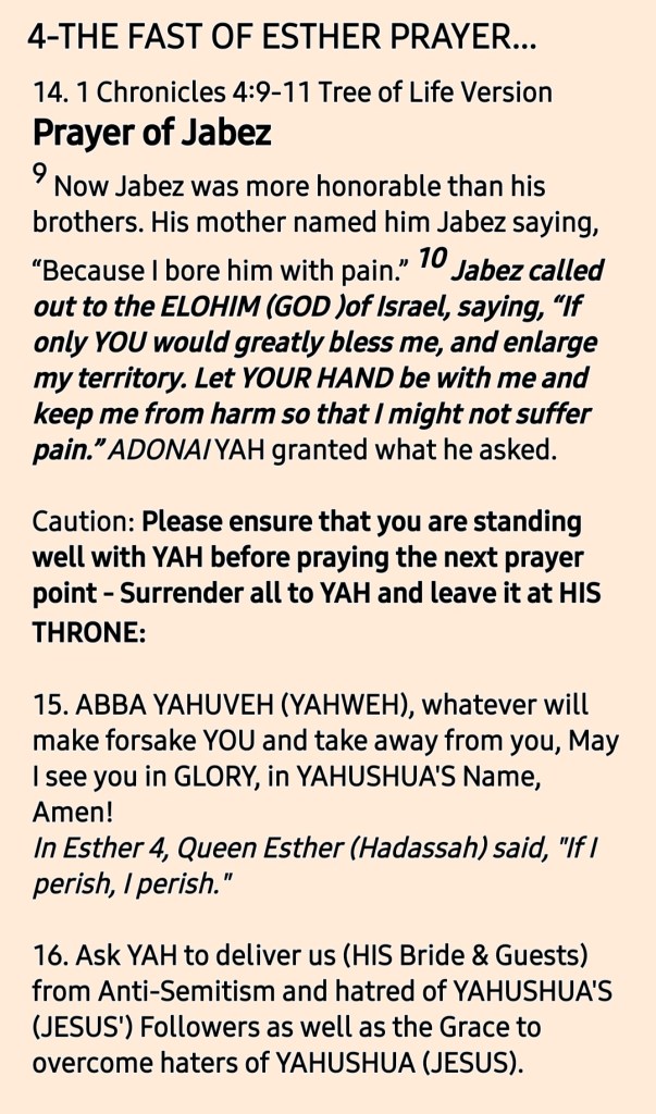 *THE FOLLOWING ARE THE PRAYER POINTS FOR DAY 1 OF The Fast Of Esther (Ta’anit Esther – in Hebrew) Programme*