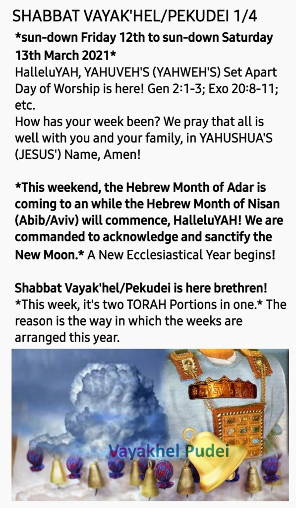 This is the last TORAH Parashah/Portion from the Book of Exodus.