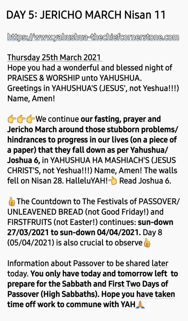 DAY 5: JERICHO MARCH (Nisan 11; Thursday 25th March 2021)…