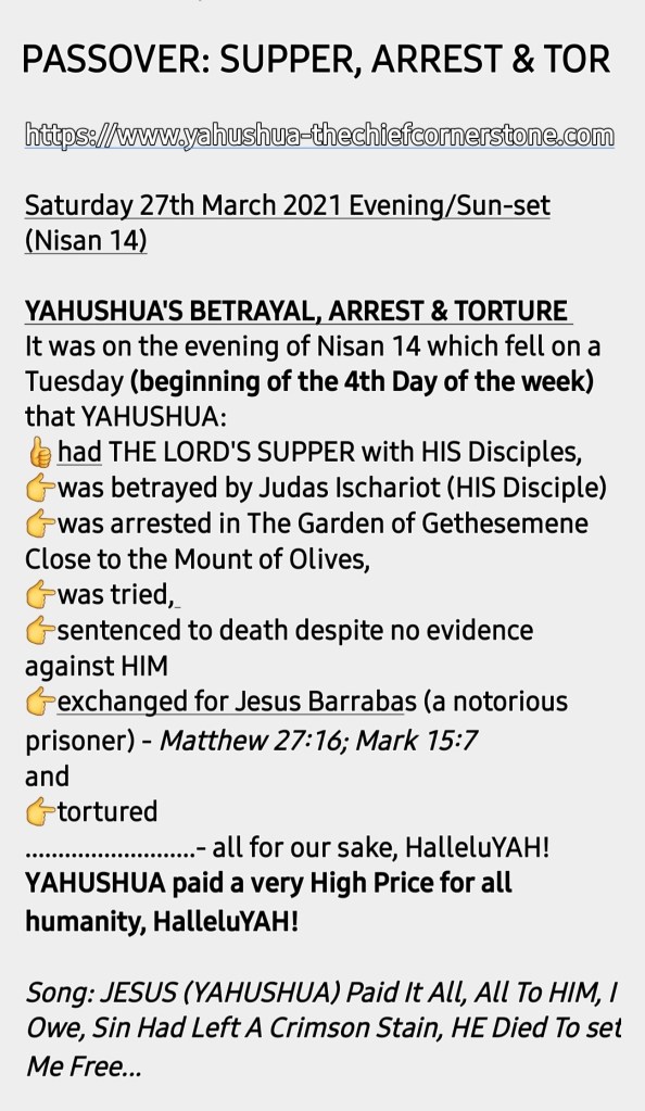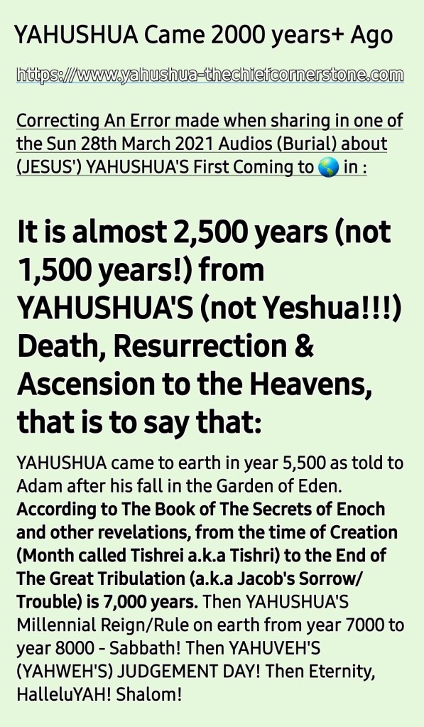 SHALOM! I am Brother Ade Israel and my wife is Sister Perpetua Shulamit. This is an online MESSIYAHNIC [MESSIANIC] HEBREW [a.k.a Jewish] PENTECOSTAL PROPHETIC MINISTRY with a HEALING/RESTORATION focus. See our TESTIMONY, VISION and MISSION STATEMENT Sections for more information on this. Welcome to our site [HOLY TEMPLE OF THE CREATOR, YAH SHADDAI without walls] created for PREACHING YAH'S GOSPEL [Matthew 28:18-20] and Sharing CRUCIAL END TIME TRUTHS [John 14:6; 8:32; Hosea 4:6]. *Please NOTE that we do not call ourselves nor anyone else who is a believer in and follower of THE ONE and ONLY TRUE MESSIAH [MASHIACH]/SAVIOUR/REDEEMER /DELIVERER who is popularly known worldwide as JESUS CHRIST [and Iesous, Jesu, Yesu, Yethu, etc] "Christian"* because we have learned through [HOLY] REVELATION from THE CREATOR/MAKER, YAH SHADDAI based on Malachai 1:1-5 and Romans 9:12-14 and Deuteronomy 12:29-32; Jeremiah 10; Ezekiel 8; etc that the terms, "Christian" and "Christianity" are Roman Vatican (Esau/Edom/Idumea) terms. *"Christian" (a tax bracket code person) actually or in fact means "A follower of the Anti-Messiah a.k.a Anti-Christ system* of Sin a.k.a Wickedness a.k.a TORAHlessness a.k.a LAWlessness System mention in 2 Thessalonians 2. *"Christianity" (a tax bracket code faith) a.k.a "Christian-Anity" is "the Vaticanisation of the Acts 2 Apostollic Foundation of Worshipping THE ONE TRUE GOD, YAH SHADDAI hence what is abominable to THE CREATOR/MAKER is widely acceptable in the name of 'the law has been done away with through nailing it to the cross', for example, Christianity encourages eating pig meat (pork, ham, bacon, etc) which is abomination as per Leviticus 11".* *Swine is a symbol of pig-mentation (skin colour) and demons love pig-mentation. Also, swine were worshiped as a deity in that location where YAHUSHUA HA MASHIACH [a.k.a JESUS CHRIST] cast the principality called "legion" out.* NOTE how the Romans introduced, established and emphasise "Easter ham" a.k.a Ishtar ham. they made it a tradition to eat pig meat 🐖 🐷 🐽 🐗 🐖 🐷 🐽 🐗 🐖 on the so-called Resurrection day of Jesus Christ, Why??? Pig meat is abomination to the LORD YAHUVEH and YAHUSHUA therefore pollutes YAH'S [GOD'S] TEMPLE (our bodies)! The Vatican is a den of demons and we are not of Rome/Esau!!!! Also, the term, "religion" = relagre = to bind back! Sadly, all roads lead back to Rome 🇮🇹 and The Vatican 🇻🇦. *Also, sadly, many of THE HOLY BIBLICAL SCRIPTURES have been Romanised and Vaticanised hence THE CREATOR/MAKER, YAH SHADDAI is calling us back to THE HEBREW ROOTS OF OUR FAITH IN HIM, HalleluYAH!* So, we call ourselves THE ORIGINAL TERM used before Roman and The Vatican changed/altered things which is: "MESSIYAHNIC [MESSIANIC] HEBREWS a.k.a JEWS"! We believe in plus followe in the footsteps of THE ONE and ONLY TRUE MESSIYAH [MESSIAH] as led by RUACH HA KODESH [HOLY SPIRIT; Not Ghost!!!] are in love with THE TORAH/LAW as per Joshua 1:8; Psalm 1; 119; Matthew 5:17-20; Colossians 2:16-17; etc. We believe in John 3:16; Romans 6:23; Isaiah 1:18-20 Matthew 28:18-20; etc as well as Acts 2; 8; etc: Genuinely Believe, Confess and Be Baptised by Immersion In Water followed➡️ by Immersion In RUACH HA KODESH then Daily Work Out Your SALVATION With Fear and Trembling [Philippians 2:12-16] while endeavouring To Be HOLY AS YAH Is HOLY [Leviticus; 1 Peter 1:16; Hebrews 12:14] and Bearing Many GOOD FRUIT FOR YAH SHADDAI [John 15; Galatians 5] !!! Once again, Welcome to our site [HOLY TEMPLE OF THE CREATOR, YAH SHADDAI without walls] created for PREACHING YAH'S GOSPEL [Matthew 28:18-20] and Sharing CRUCIAL END TIME TRUTHS [John 14:6; 8:32; Hosea 4:6]. ➡️This is our GETTR link [GETTR is the uncensored version of Twitter, just so you know] : https://gettr.com/user/yahushua7 ➡️We also have a *TELEGRAM Channel* [uncensored alternative to WhatsApp] and ➡️*MeWe* [uncensored alternative to Facebook and Instagram]! ➡️Here is our donation link if you please [if you wish to be a BLESSING to us and others in need worldwide through this online Ministry]: 📌https://www.paypal.me/AdeIsrael and/or 📌https://www.paypal.me/PNAMUTEBI ➡️Here is our donation page which explains what donations are for, if you please: https://yahushua-thechiefcornerstone.com/donations/ ➡️➡️➡️We are called and appointed by THE CREATOR, YAH SHADDAI to raise awareness of "THE JEWISH-NESS OF THE MESSIYAH [MESSIAH]" who is popularly known as JESUS CHRIST OF NAZARETH and how this affects THE BODY OF YAHUSHUA HA MASHIACH! ➡️➡️➡️THE HOLY TRINITY GODHEAD WHOM we worship are known as: 📌➡️1. GOD THE FATHER, ABBA YAHUVEH'S (a.k.a YAHWEH); 📌➡️2. GOD THE SON, YAHUSHUA [a.k.a YAHSHUA] HA MASHIACH and 📌➡️3. GOD THE MOTHER [IMMAYAH] a.k.a GOD THE HOLY SPIRIT (Not Ghost!) [RUACH HA KODESH] a.k.a SHEKINYAH GLORY [Isaiah 60:1-2; etc] a.k.a WISDOM [Proverbs 8:22-31]! Please NOTE that 2 Corinthians 13:14 is evidence of the existence of THE HOLY TRINITY GODHEAD [YAHUVEH – FATHER; YAHUSHUA HA MASHIACH – SON; IMMAYAH a.k.a SHEKINYAH GLORY – MOTHER] just as Revelation 16:13 read alongside Revelation 13 is the evidence of the existence of ⚠️the Unholy Trinity godhead (lucifer – father, Barrack Hussein Obama – son and Pope Francis a.k.a Jorge Mario Bergoglio – mother)!⚠️ There is a crucial and urgent need for increased ACKNOWLEDGEMENT/RECOGNITION and AWARENESS of the MESSIYAH [MESSIAH] JESUS CHRIST'S [Not Yeshua! ; Not YeshaYAHU!!!] HEBREW-NESS or JEWISHNESS plus how it affects us, mankind who desire to dwell with HIM for eternity. *The Left Behind during and after THE FIRST HOLY CATCHING AWAY (Not "RAPTURE" which means rape) TO THE HEAVENS will be the most affected by this issue of THE NAME OF THE MESSIAH!* It will begin to take effect during The Upcoming 3 Days and Nights of Worldwide Gross Darkness [Amos 8:9-10; Joel 2:30-32; Matthew 12:38-42; Mark 8:12; etc]. See how people gen