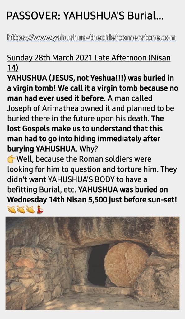*YAHUSHUA’S Burial (Nisan 15 just before sun-set)*