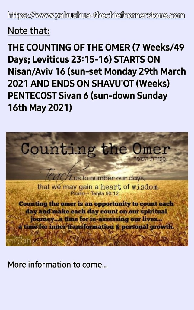 *COUNTING THE OMER TO SHAVU’OT PENTECOST (2021 Dates)*