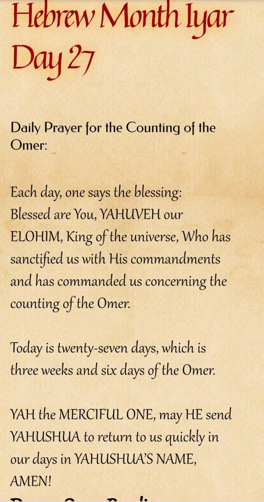 We have completed 4 weeks counting to Shavuot Sitting At The Feet Of Our Master YAHUSHUA
