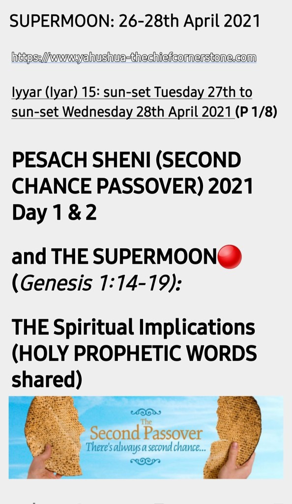 Prophecy: SUPERMOON & PESACH SHENI April 2021 – The Implications/Significance