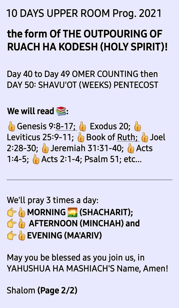 The final 10 Days leading up to SHAVUOT/WEEKS/PENTECOST