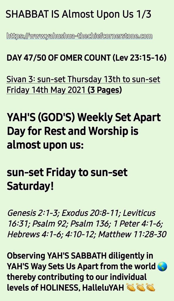 SHALOM! I am Brother Ade Israel and my wife is Sister Perpetua Shulamit. This is an online MESSIYAHNIC [MESSIANIC] HEBREW [a.k.a Jewish] PENTECOSTAL PROPHETIC MINISTRY with a HEALING/RESTORATION focus. See our TESTIMONY, VISION and MISSION STATEMENT Sections for more information on this. Welcome to our site [HOLY TEMPLE OF THE CREATOR, YAH SHADDAI without walls] created for PREACHING YAH'S GOSPEL [Matthew 28:18-20] and Sharing CRUCIAL END TIME TRUTHS [John 14:6; 8:32; Hosea 4:6]. *Please NOTE that we do not call ourselves nor anyone else who is a believer in and follower of THE ONE and ONLY TRUE MESSIAH [MASHIACH]/SAVIOUR/REDEEMER /DELIVERER who is popularly known worldwide as JESUS CHRIST [and Iesous, Jesu, Yesu, Yethu, etc] "Christian"* because we have learned through [HOLY] REVELATION from THE CREATOR/MAKER, YAH SHADDAI based on Malachai 1:1-5 and Romans 9:12-14 and Deuteronomy 12:29-32; Jeremiah 10; Ezekiel 8; etc that the terms, "Christian" and "Christianity" are Roman Vatican (Esau/Edom/Idumea) terms. *"Christian" (a tax bracket code person) actually or in fact means "A follower of the Anti-Messiah a.k.a Anti-Christ system* of Sin a.k.a Wickedness a.k.a TORAHlessness a.k.a LAWlessness System mention in 2 Thessalonians 2. *"Christianity" (a tax bracket code faith) a.k.a "Christian-Anity" is "the Vaticanisation of the Acts 2 Apostollic Foundation of Worshipping THE ONE TRUE GOD, YAH SHADDAI hence what is abominable to THE CREATOR/MAKER is widely acceptable in the name of 'the law has been done away with through nailing it to the cross', for example, Christianity encourages eating pig meat (pork, ham, bacon, etc) which is abomination as per Leviticus 11".* *Swine is a symbol of pig-mentation (skin colour) and demons love pig-mentation. Also, swine were worshiped as a deity in that location where YAHUSHUA HA MASHIACH [a.k.a JESUS CHRIST] cast the principality called "legion" out.* NOTE how the Romans introduced, established and emphasise "Easter ham" a.k.a Ishtar ham. they made it a tradition to eat pig meat 🐖 🐷 🐽 🐗 🐖 🐷 🐽 🐗 🐖 on the so-called Resurrection day of Jesus Christ, Why??? Pig meat is abomination to the LORD YAHUVEH and YAHUSHUA therefore pollutes YAH'S [GOD'S] TEMPLE (our bodies)! The Vatican is a den of demons and we are not of Rome/Esau!!!! Also, the term, "religion" = relagre = to bind back! Sadly, all roads lead back to Rome 🇮🇹 and The Vatican 🇻🇦. *Also, sadly, many of THE HOLY BIBLICAL SCRIPTURES have been Romanised and Vaticanised hence THE CREATOR/MAKER, YAH SHADDAI is calling us back to THE HEBREW ROOTS OF OUR FAITH IN HIM, HalleluYAH!* So, we call ourselves THE ORIGINAL TERM used before Roman and The Vatican changed/altered things which is: "MESSIYAHNIC [MESSIANIC] HEBREWS a.k.a JEWS"! We believe in plus followe in the footsteps of THE ONE and ONLY TRUE MESSIYAH [MESSIAH] as led by RUACH HA KODESH [HOLY SPIRIT; Not Ghost!!!] are in love with THE TORAH/LAW as per Joshua 1:8; Psalm 1; 119; Matthew 5:17-20; Colossians 2:16-17; etc. We believe in John 3:16; Romans 6:23; Isaiah 1:18-20 Matthew 28:18-20; etc as well as Acts 2; 8; etc: Genuinely Believe, Confess and Be Baptised by Immersion In Water followed➡️ by Immersion In RUACH HA KODESH then Daily Work Out Your SALVATION With Fear and Trembling [Philippians 2:12-16] while endeavouring To Be HOLY AS YAH Is HOLY [Leviticus; 1 Peter 1:16; Hebrews 12:14] and Bearing Many GOOD FRUIT FOR YAH SHADDAI [John 15; Galatians 5] !!! Once again, Welcome to our site [HOLY TEMPLE OF THE CREATOR, YAH SHADDAI without walls] created for PREACHING YAH'S GOSPEL [Matthew 28:18-20] and Sharing CRUCIAL END TIME TRUTHS [John 14:6; 8:32; Hosea 4:6]. ➡️This is our GETTR link [GETTR is the uncensored version of Twitter, just so you know] : https://gettr.com/user/yahushua7 ➡️We also have a *TELEGRAM Channel* [uncensored alternative to WhatsApp] and ➡️*MeWe* [uncensored alternative to Facebook and Instagram]! ➡️Here is our donation link if you please [if you wish to be a BLESSING to us and others in need worldwide through this online Ministry]: 📌https://www.paypal.me/AdeIsrael and/or 📌https://www.paypal.me/PNAMUTEBI ➡️Here is our donation page which explains what donations are for, if you please: https://yahushua-thechiefcornerstone.com/donations/ ➡️➡️➡️We are called and appointed by THE CREATOR, YAH SHADDAI to raise awareness of "THE JEWISH-NESS OF THE MESSIYAH [MESSIAH]" who is popularly known as JESUS CHRIST OF NAZARETH and how this affects THE BODY OF YAHUSHUA HA MASHIACH! ➡️➡️➡️THE HOLY TRINITY GODHEAD WHOM we worship are known as: 📌➡️1. GOD THE FATHER, ABBA YAHUVEH'S (a.k.a YAHWEH); 📌➡️2. GOD THE SON, YAHUSHUA [a.k.a YAHSHUA] HA MASHIACH and 📌➡️3. GOD THE MOTHER [IMMAYAH] a.k.a GOD THE HOLY SPIRIT (Not Ghost!) [RUACH HA KODESH] a.k.a SHEKINYAH GLORY [Isaiah 60:1-2; etc] a.k.a WISDOM [Proverbs 8:22-31]! Please NOTE that 2 Corinthians 13:14 is evidence of the existence of THE HOLY TRINITY GODHEAD [YAHUVEH – FATHER; YAHUSHUA HA MASHIACH – SON; IMMAYAH a.k.a SHEKINYAH GLORY – MOTHER] just as Revelation 16:13 read alongside Revelation 13 is the evidence of the existence of ⚠️the Unholy Trinity godhead (lucifer – father, Barrack Hussein Obama – son and Pope Francis a.k.a Jorge Mario Bergoglio – mother)!⚠️ There is a crucial and urgent need for increased ACKNOWLEDGEMENT/RECOGNITION and AWARENESS of the MESSIYAH [MESSIAH] JESUS CHRIST'S [Not Yeshua! ; Not YeshaYAHU!!!] HEBREW-NESS or JEWISHNESS plus how it affects us, mankind who desire to dwell with HIM for eternity. *The Left Behind during and after THE FIRST HOLY CATCHING AWAY (Not "RAPTURE" which means rape) TO THE HEAVENS will be the most affected by this issue of THE NAME OF THE MESSIAH!* It will begin to take effect during The Upcoming 3 Days and Nights of Worldwide Gross Darkness [Amos 8:9-10; Joel 2:30-32; Matthew 12:38-42; Mark 8:12; etc]. See how people gen