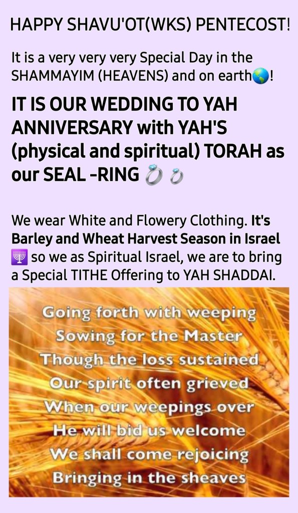 A lot of Useful SHAVU’OT RELATED Information (some Very Prophetic) will be shared this week on this Website, our Facebook account and Mewe account as well as via WhatsApp and Telegram. Please be on the look out 🙏 YAH bless and keep you.