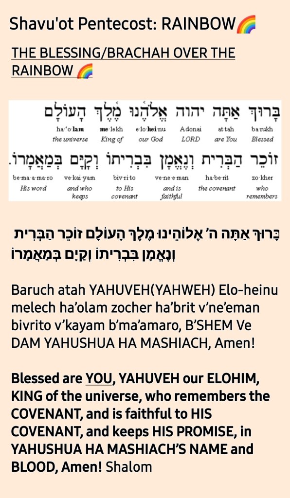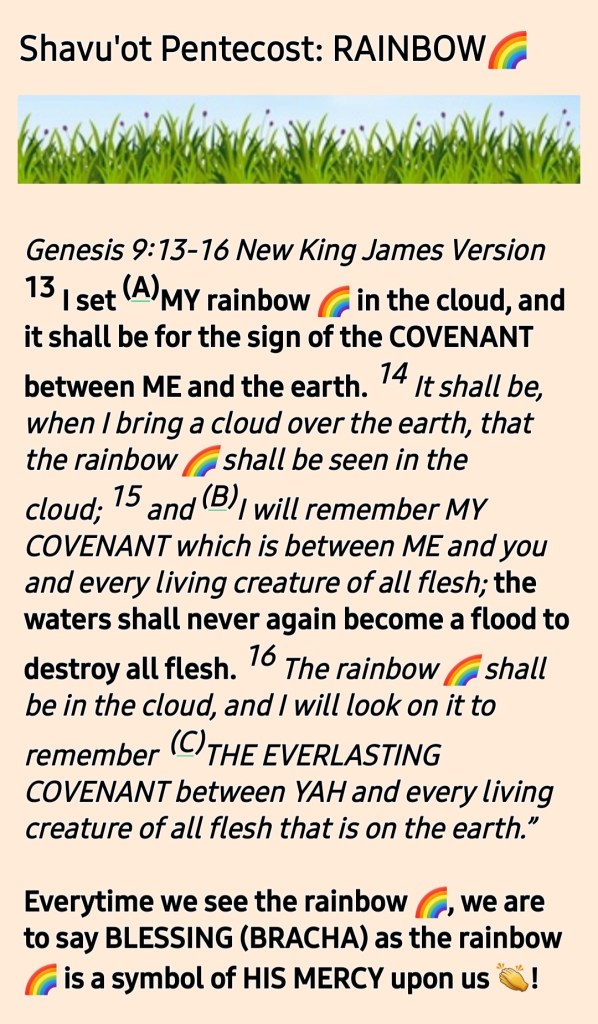 Wow! The rainbow covenant reminds us of God’s faithfulness and love for humanity that he will not destroy the earth with flood again. May we receive renewal of this covenant in YAHUSHUA’S NAME