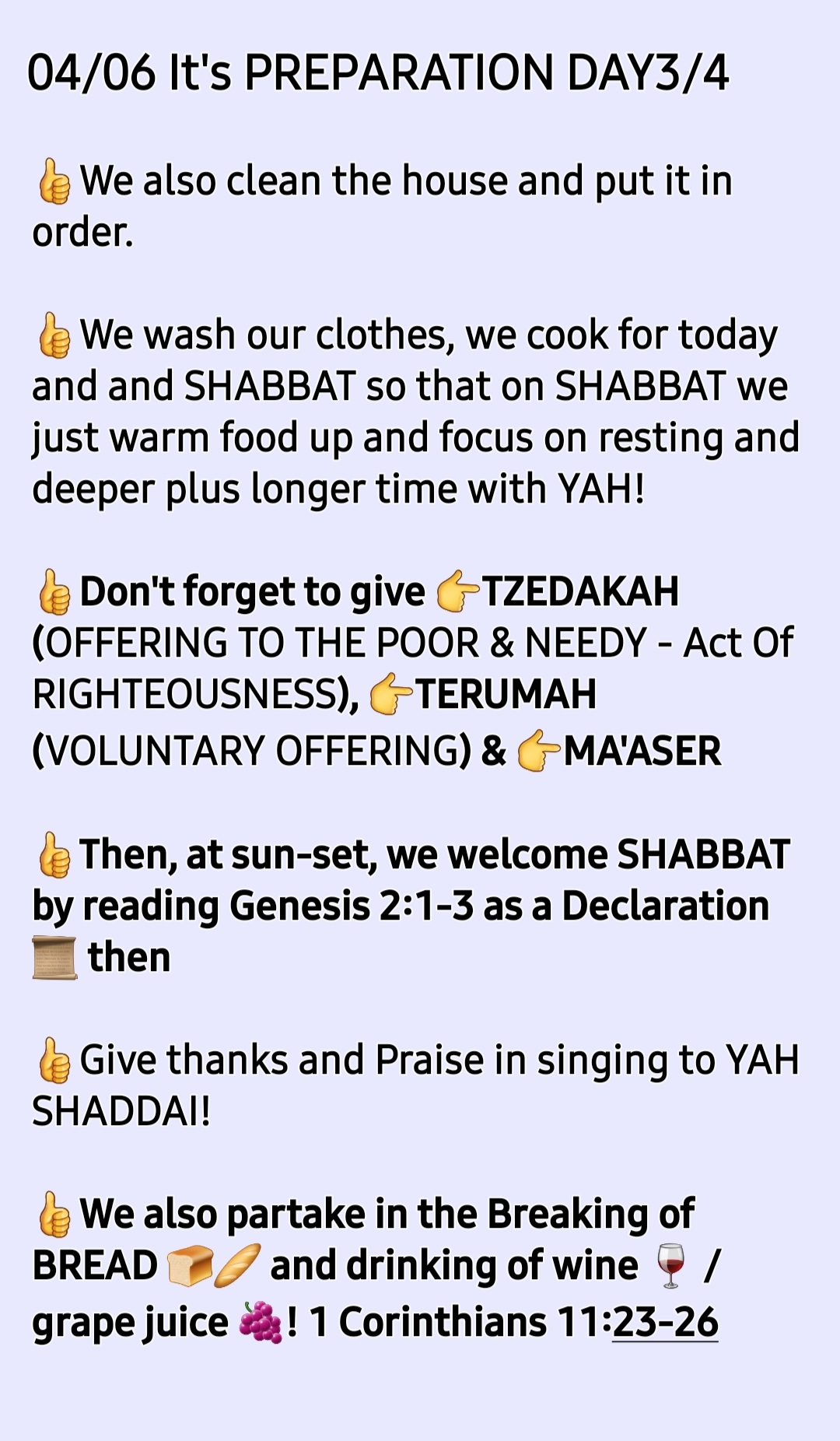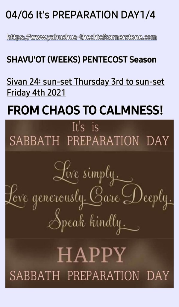 PREPARATION DAY (6th Day Weekly) and YAH’S SABBATH (SHABBAT: 7th Day Weekly)
