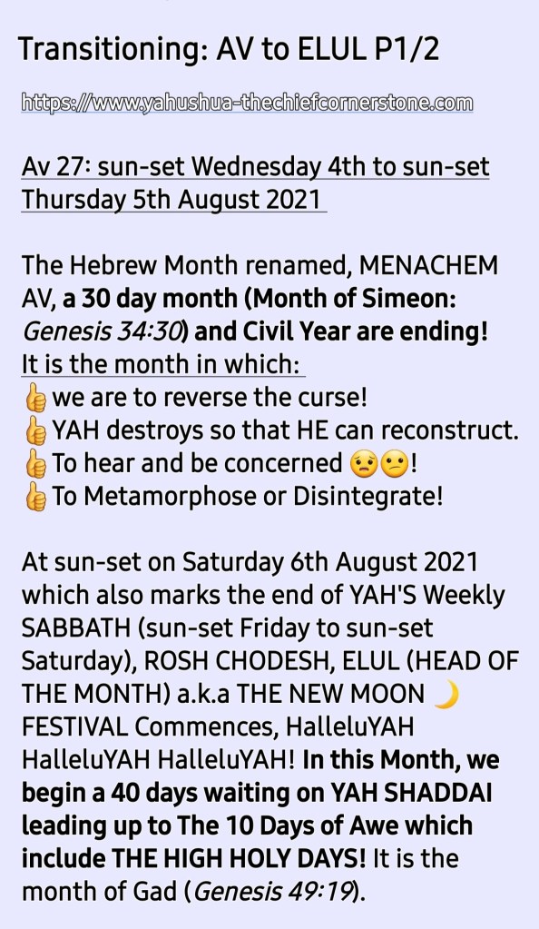 SHALOM! I am Brother Ade Israel and my wife is Sister Perpetua Shulamit. This is an online MESSIYAHNIC [MESSIANIC] HEBREW [a.k.a Jewish] PENTECOSTAL PROPHETIC MINISTRY with a HEALING/RESTORATION focus. See our TESTIMONY, VISION and MISSION STATEMENT Sections for more information on this. Welcome to our site [HOLY TEMPLE OF THE CREATOR, YAH SHADDAI without walls] created for PREACHING YAH'S GOSPEL [Matthew 28:18-20] and Sharing CRUCIAL END TIME TRUTHS [John 14:6; 8:32; Hosea 4:6]. *Please NOTE that we do not call ourselves nor anyone else who is a believer in and follower of THE ONE and ONLY TRUE MESSIAH [MASHIACH]/SAVIOUR/REDEEMER /DELIVERER who is popularly known worldwide as JESUS CHRIST [and Iesous, Jesu, Yesu, Yethu, etc] "Christian"* because we have learned through [HOLY] REVELATION from THE CREATOR/MAKER, YAH SHADDAI based on Malachai 1:1-5 and Romans 9:12-14 and Deuteronomy 12:29-32; Jeremiah 10; Ezekiel 8; etc that the terms, "Christian" and "Christianity" are Roman Vatican (Esau/Edom/Idumea) terms. *"Christian" (a tax bracket code person) actually or in fact means "A follower of the Anti-Messiah a.k.a Anti-Christ system* of Sin a.k.a Wickedness a.k.a TORAHlessness a.k.a LAWlessness System mention in 2 Thessalonians 2. *"Christianity" (a tax bracket code faith) a.k.a "Christian-Anity" is "the Vaticanisation of the Acts 2 Apostollic Foundation of Worshipping THE ONE TRUE GOD, YAH SHADDAI hence what is abominable to THE CREATOR/MAKER is widely acceptable in the name of 'the law has been done away with through nailing it to the cross', for example, Christianity encourages eating pig meat (pork, ham, bacon, etc) which is abomination as per Leviticus 11".* *Swine is a symbol of pig-mentation (skin colour) and demons love pig-mentation. Also, swine were worshiped as a deity in that location where YAHUSHUA HA MASHIACH [a.k.a JESUS CHRIST] cast the principality called "legion" out.* NOTE how the Romans introduced, established and emphasise "Easter ham" a.k.a Ishtar ham. they made it a tradition to eat pig meat 🐖 🐷 🐽 🐗 🐖 🐷 🐽 🐗 🐖 on the so-called Resurrection day of Jesus Christ, Why??? Pig meat is abomination to the LORD YAHUVEH and YAHUSHUA therefore pollutes YAH'S [GOD'S] TEMPLE (our bodies)! The Vatican is a den of demons and we are not of Rome/Esau!!!! Also, the term, "religion" = relagre = to bind back! Sadly, all roads lead back to Rome 🇮🇹 and The Vatican 🇻🇦. *Also, sadly, many of THE HOLY BIBLICAL SCRIPTURES have been Romanised and Vaticanised hence THE CREATOR/MAKER, YAH SHADDAI is calling us back to THE HEBREW ROOTS OF OUR FAITH IN HIM, HalleluYAH!* So, we call ourselves THE ORIGINAL TERM used before Roman and The Vatican changed/altered things which is: "MESSIYAHNIC [MESSIANIC] HEBREWS a.k.a JEWS"! We believe in plus followe in the footsteps of THE ONE and ONLY TRUE MESSIYAH [MESSIAH] as led by RUACH HA KODESH [HOLY SPIRIT; Not Ghost!!!] are in love with THE TORAH/LAW as per Joshua 1:8; Psalm 1; 119; Matthew 5:17-20; Colossians 2:16-17; etc. We believe in John 3:16; Romans 6:23; Isaiah 1:18-20 Matthew 28:18-20; etc as well as Acts 2; 8; etc: Genuinely Believe, Confess and Be Baptised by Immersion In Water followed➡️ by Immersion In RUACH HA KODESH then Daily Work Out Your SALVATION With Fear and Trembling [Philippians 2:12-16] while endeavouring To Be HOLY AS YAH Is HOLY [Leviticus; 1 Peter 1:16; Hebrews 12:14] and Bearing Many GOOD FRUIT FOR YAH SHADDAI [John 15; Galatians 5] !!! Once again, Welcome to our site [HOLY TEMPLE OF THE CREATOR, YAH SHADDAI without walls] created for PREACHING YAH'S GOSPEL [Matthew 28:18-20] and Sharing CRUCIAL END TIME TRUTHS [John 14:6; 8:32; Hosea 4:6]. ➡️This is our GETTR link [GETTR is the uncensored version of Twitter, just so you know] : https://gettr.com/user/yahushua7 ➡️We also have a *TELEGRAM Channel* [uncensored alternative to WhatsApp] and ➡️*MeWe* [uncensored alternative to Facebook and Instagram]! ➡️Here is our donation link if you please [if you wish to be a BLESSING to us and others in need worldwide through this online Ministry]: 📌https://www.paypal.me/AdeIsrael and/or 📌https://www.paypal.me/PNAMUTEBI ➡️Here is our donation page which explains what donations are for, if you please: https://yahushua-thechiefcornerstone.com/donations/ ➡️➡️➡️We are called and appointed by THE CREATOR, YAH SHADDAI to raise awareness of "THE JEWISH-NESS OF THE MESSIYAH [MESSIAH]" who is popularly known as JESUS CHRIST OF NAZARETH and how this affects THE BODY OF YAHUSHUA HA MASHIACH! ➡️➡️➡️THE HOLY TRINITY GODHEAD WHOM we worship are known as: 📌➡️1. GOD THE FATHER, ABBA YAHUVEH'S (a.k.a YAHWEH); 📌➡️2. GOD THE SON, YAHUSHUA [a.k.a YAHSHUA] HA MASHIACH and 📌➡️3. GOD THE MOTHER [IMMAYAH] a.k.a GOD THE HOLY SPIRIT (Not Ghost!) [RUACH HA KODESH] a.k.a SHEKINYAH GLORY [Isaiah 60:1-2; etc] a.k.a WISDOM [Proverbs 8:22-31]! Please NOTE that 2 Corinthians 13:14 is evidence of the existence of THE HOLY TRINITY GODHEAD [YAHUVEH – FATHER; YAHUSHUA HA MASHIACH – SON; IMMAYAH a.k.a SHEKINYAH GLORY – MOTHER] just as Revelation 16:13 read alongside Revelation 13 is the evidence of the existence of ⚠️the Unholy Trinity godhead (lucifer – father, Barrack Hussein Obama – son and Pope Francis a.k.a Jorge Mario Bergoglio – mother)!⚠️ There is a crucial and urgent need for increased ACKNOWLEDGEMENT/RECOGNITION and AWARENESS of the MESSIYAH [MESSIAH] JESUS CHRIST'S [Not Yeshua! ; Not YeshaYAHU!!!] HEBREW-NESS or JEWISHNESS plus how it affects us, mankind who desire to dwell with HIM for eternity. *The Left Behind during and after THE FIRST HOLY CATCHING AWAY (Not "RAPTURE" which means rape) TO THE HEAVENS will be the most affected by this issue of THE NAME OF THE MESSIAH!* It will begin to take effect during The Upcoming 3 Days and Nights of Worldwide Gross Darkness [Amos 8:9-10; Joel 2:30-32; Matthew 12:38-42; Mark 8:12; etc]. See how people gen