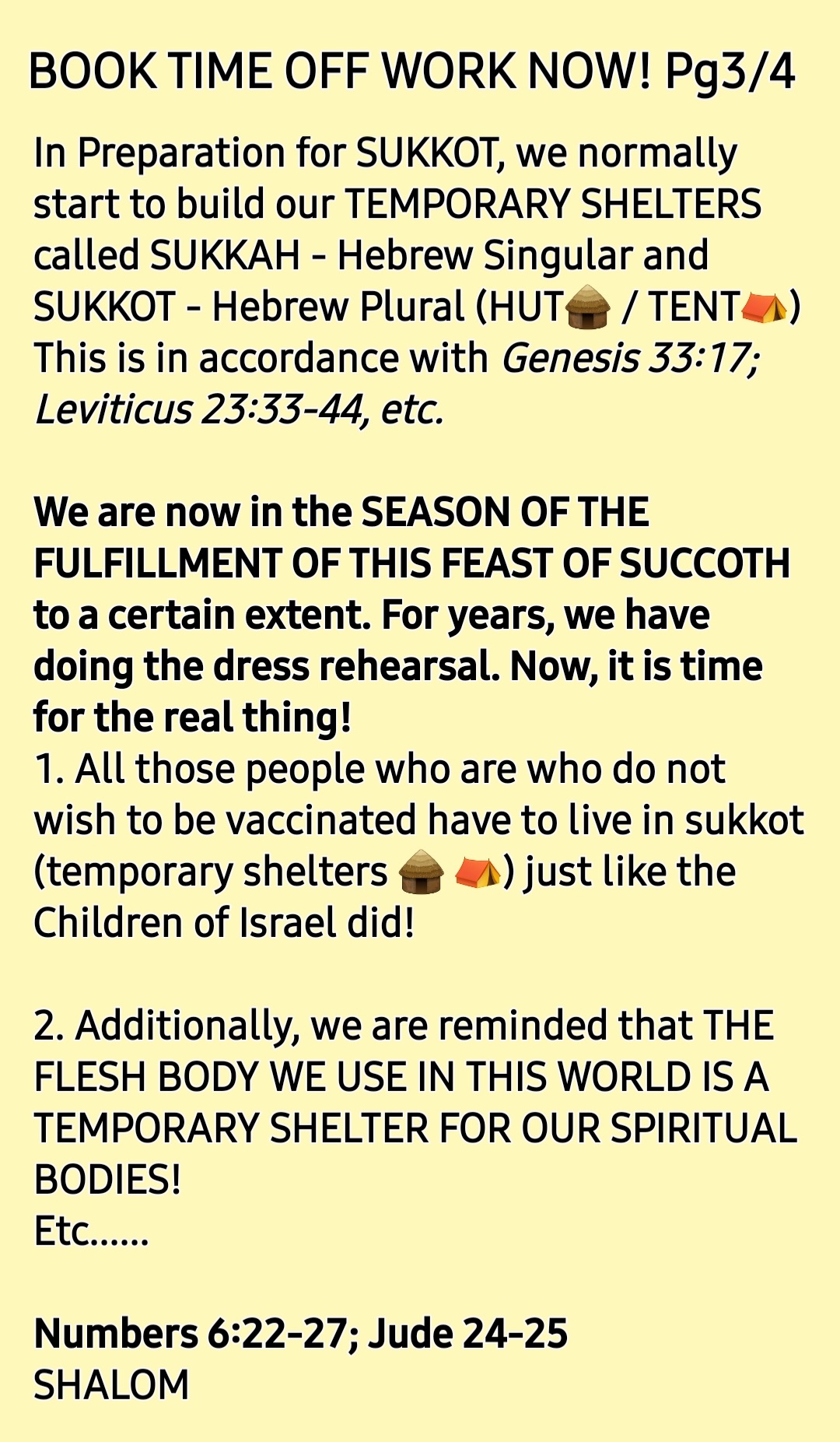 You are advised to take action while there is still time! This is Day 3 of the Hebrew Month of ELUL. ROSH HA SHANAH is in 4 weeks’ time! There is much PREPARATION TO BE DONE FOR THE UPCOMING HIGH HOLY DAYS! Don’t wait until the last minute.