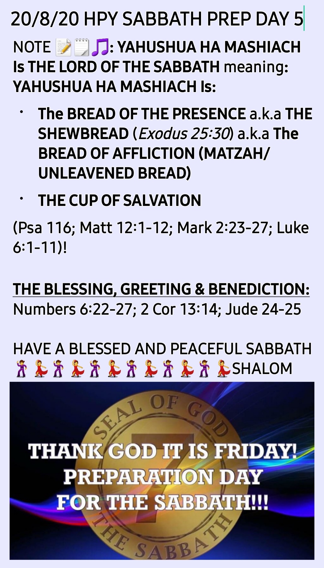 > SHARATH YAHUSHUA HA MASHIACH ROSH PINNAH Moed (Glasgow, Scotland, U.K) > posted: ” SHALOM, Click on the following link for more Useful links theat > bear useful related Teachings: 13/08/2021: HAPPY SHABBAT PREPARATION DAY > (sun-set Thursday 12th to sun-set Friday 13th August 2021)! SHALOM ” >
