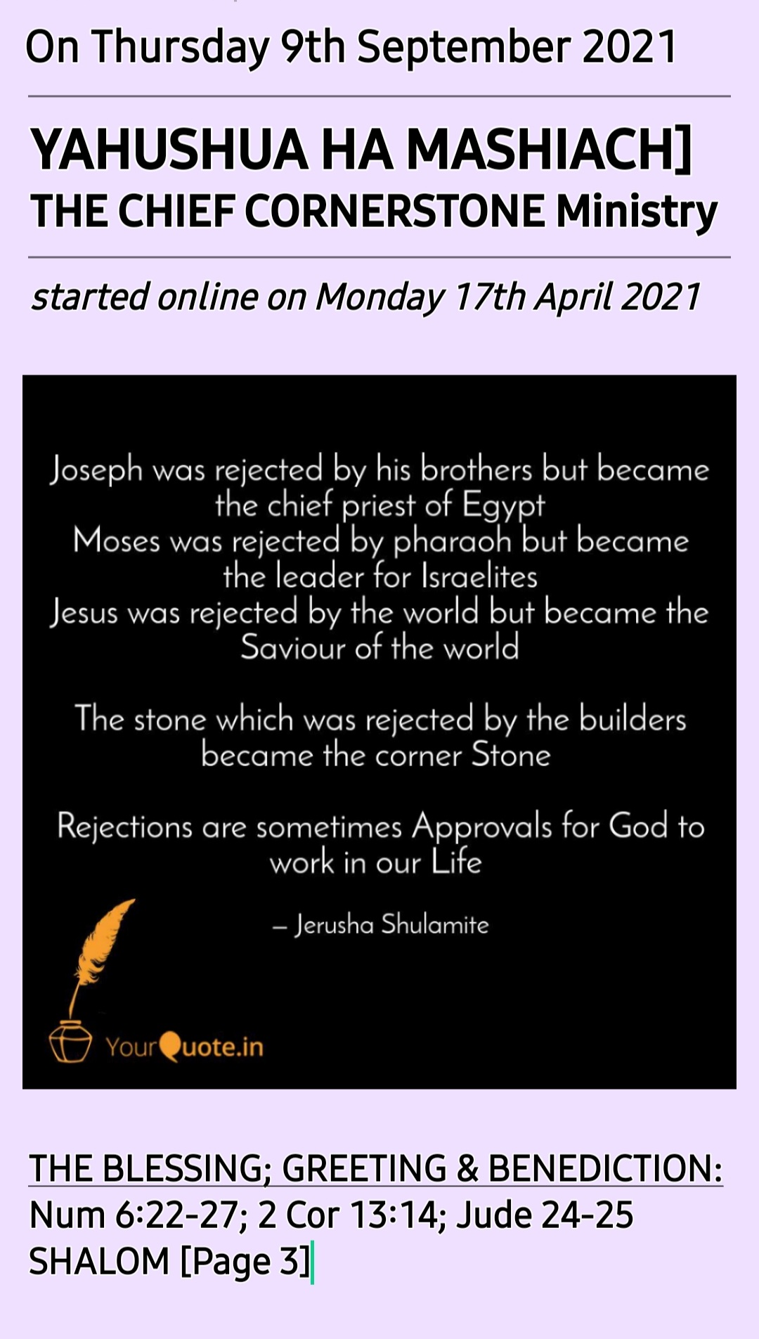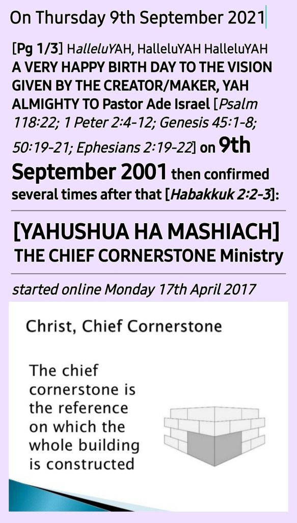So, as Today is Thursday 9th September 2021 on the Roman Gregorian Calendar! We remember this Vision, Praise YAH for it and Celebrate YAHUSHUA HA MASHIACH’S (JESUS CHRIST’S; not Yeshua) BIRTH in human form in this world as per John 1; 3:16; etc.