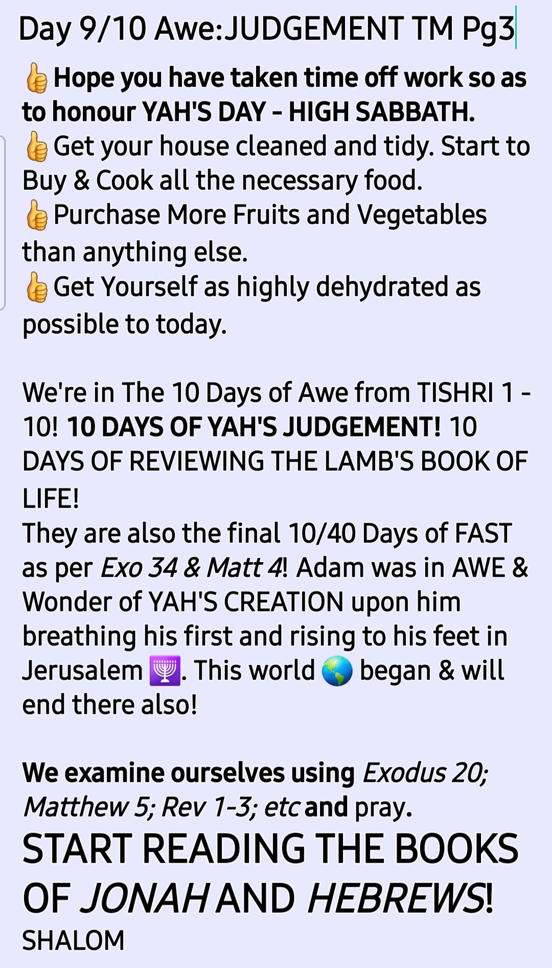 The sun has set in some countries and is yet to set in other countries. THE LORD’S DAY, that is to say, YOM KIPPUR [DAY OF ATONEMENT] Is upon us. *We open it by reading Leviticus 16 and many other Scriptures.* As the day progresses, we say REPENTANCE PRAYERS COVERING VARIOUS CATEGORIES OF OUR LIVES [will share later] and in between read and study the *Books of Jonah and Hebrews.* If you have time, you can also read Zechariah 3; etc.