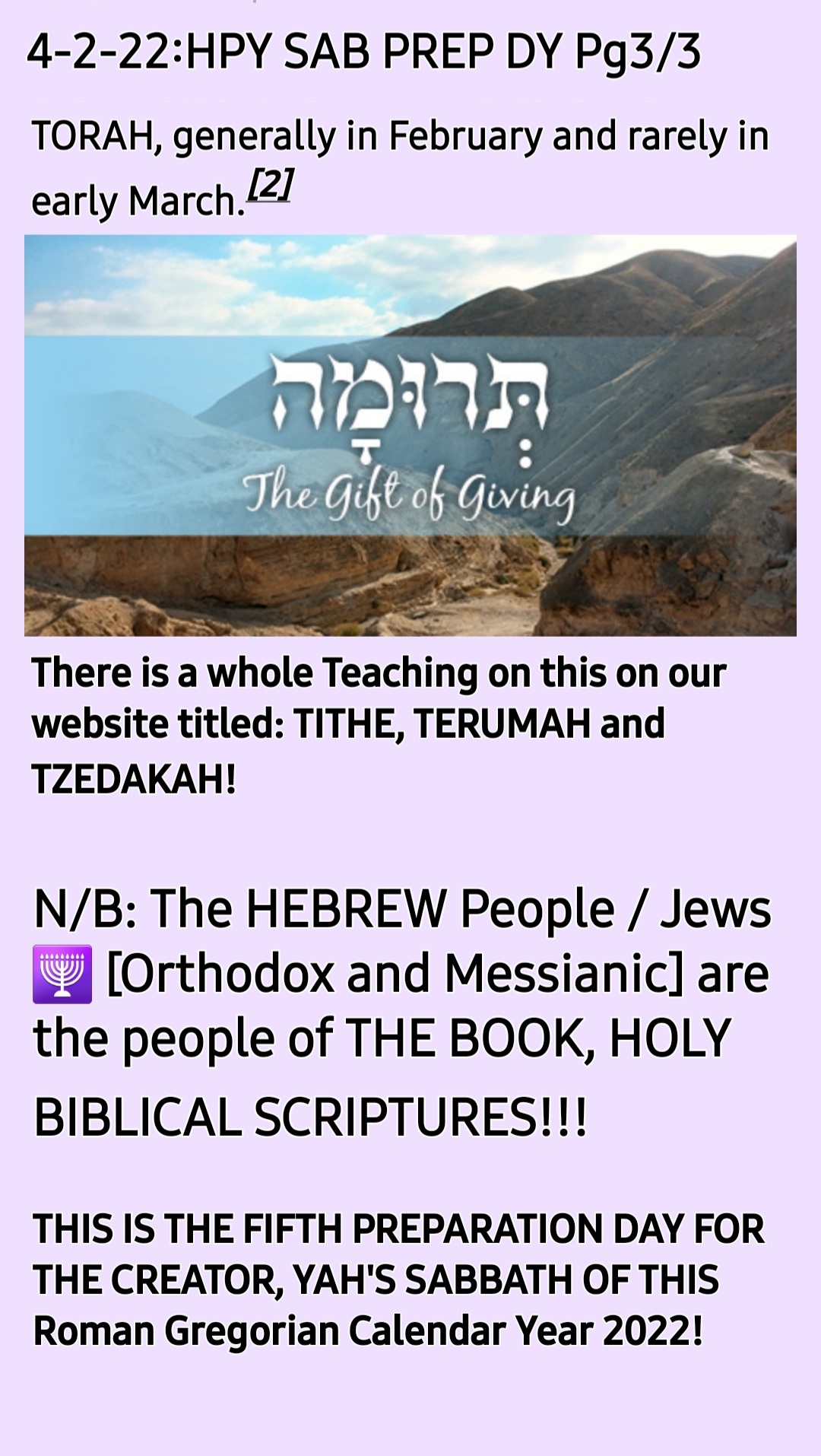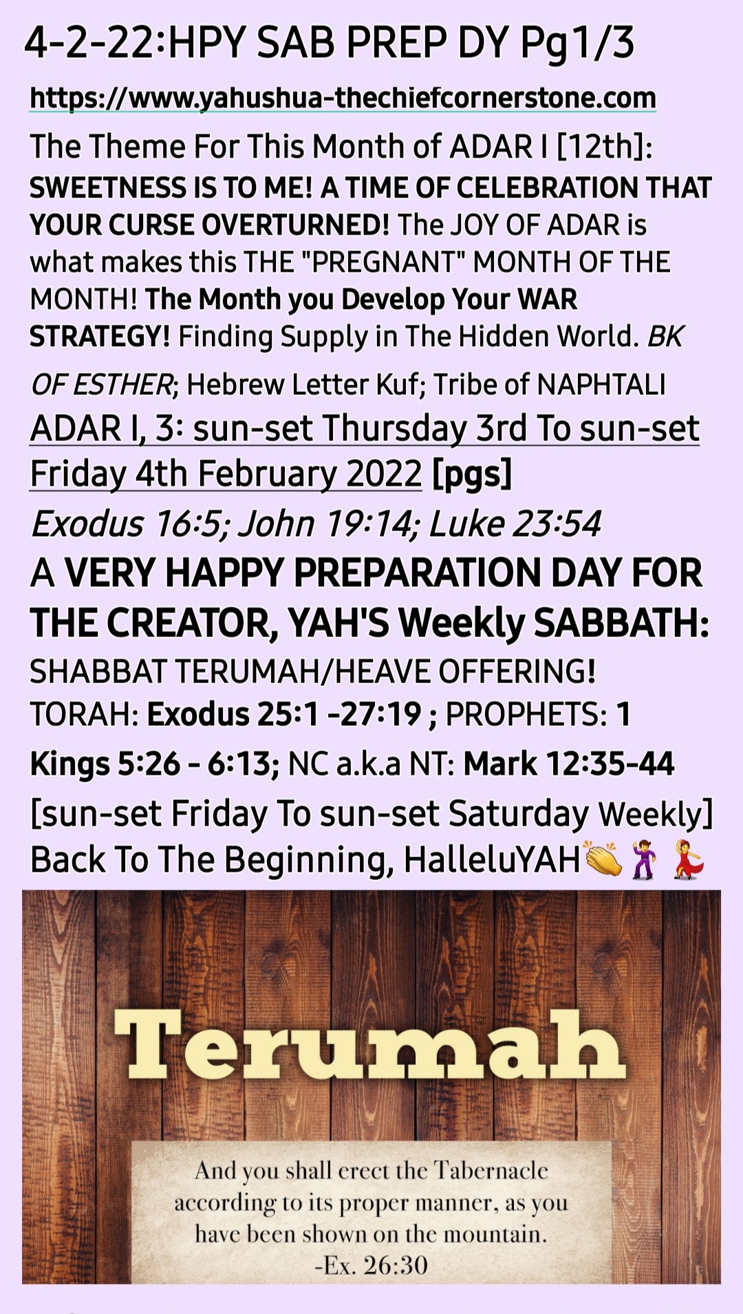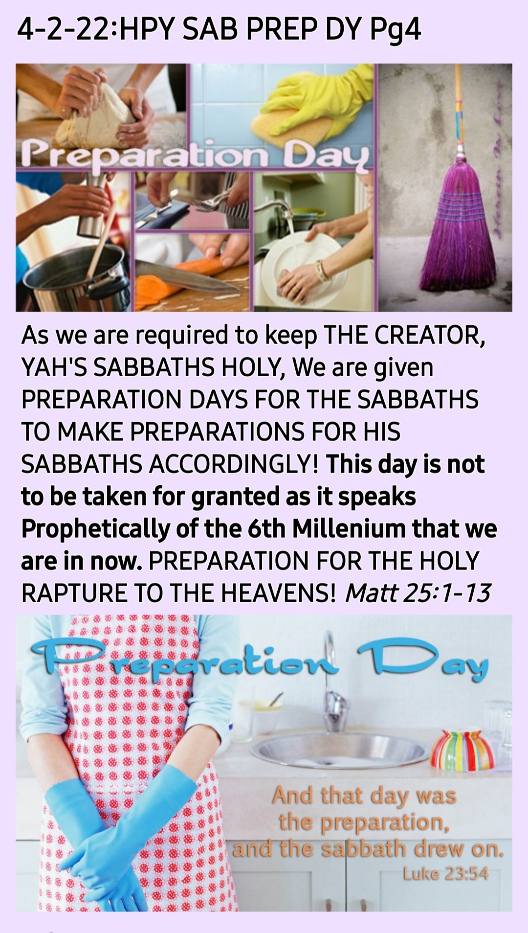 9. PREPARATION DAY (6th Day Weekly) and YAH’S SABBATH (SHABBAT: 7th Day Weekly)
