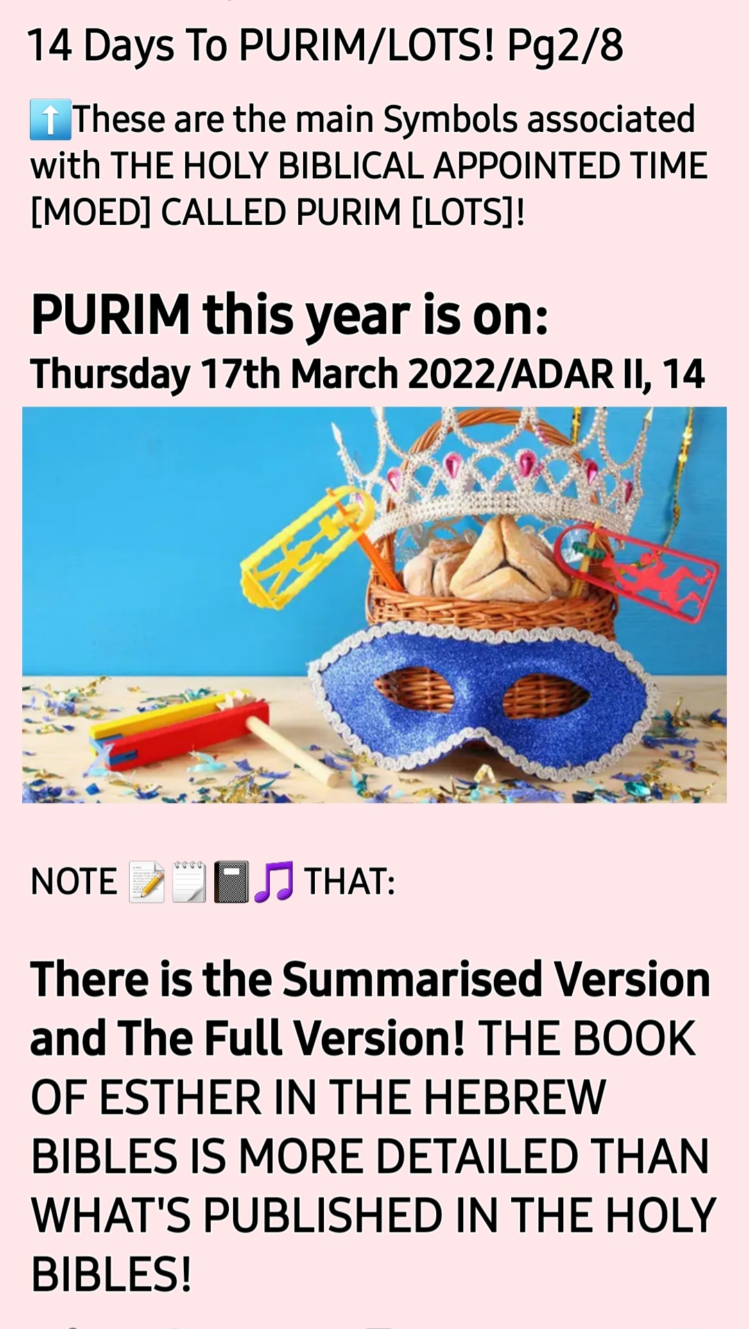 2. As we learned earlier this week, *Unholy SHROVE TUESDAY and ASH WEDNESDAY* which are always 4 weeks away from UNHOLY GOOD FRIDAY AND UNHOLY EASTER/ISHTAR *are COUNTERFEIT DIVERSION and Replacement of* from THE HOLY APPOINTED TIME OF *PURIM/LOTS* which is always 4 weeks away from THE HOLY BIBLICAL APPOINTED TIME OF PASSOVER AND FIRSTFRUITS!