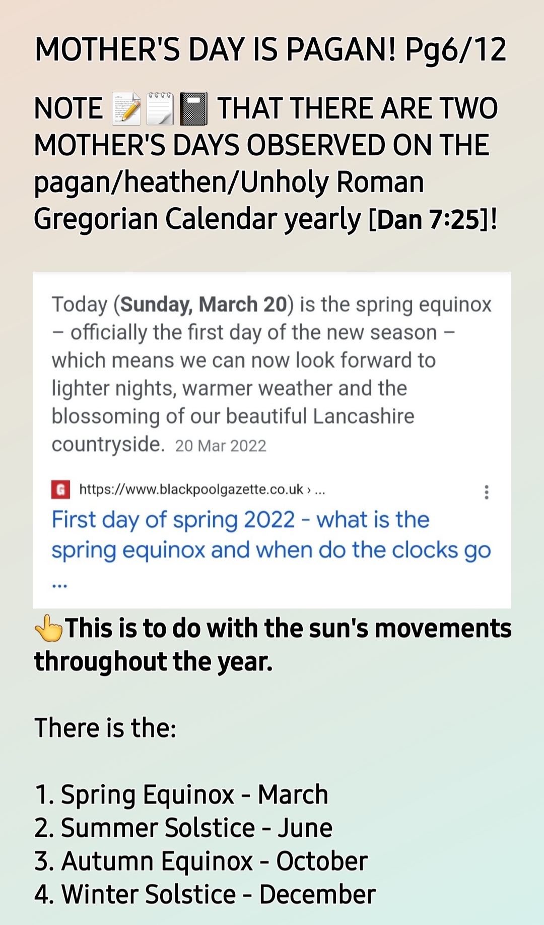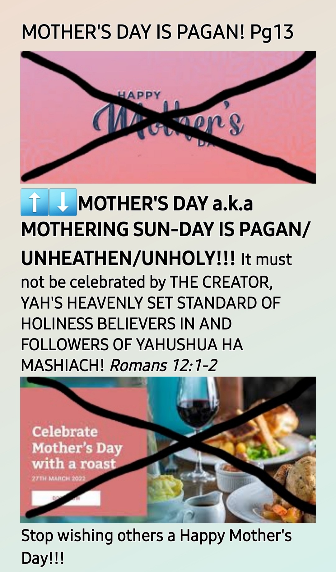 *If you do not observe Sun-day Worship, you will not be bothered by the pagan/heathen/unholy days on ha satan’s Calendar, the Roman Gregorian Calendar!*
