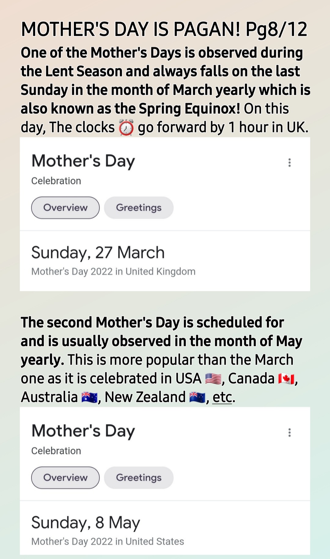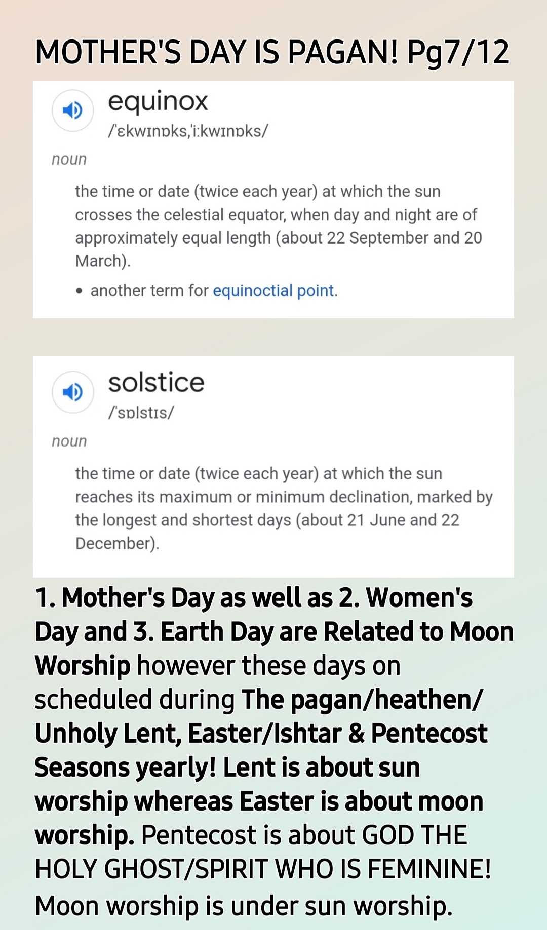 It was also deliberately decided many years ago that pagan/heathen/unholy Mother’s Day falls within this season. Same goes for pagan/heathen/unholy Mother Earth Day in April yearly. *These are days of heightened withcraft activity! So, you are encouraged to use the following HOLY BIBLICAL SCRIPTURES to pray:*