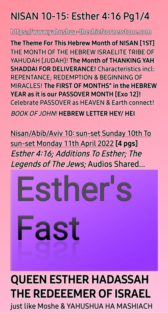 Will add PASSOVER Prophetic Messages on Prophet Abraham, Prophet Daniel, etc… tomorrow, Wednesday 13th April 2022/NISAN 12 and Thursday 14th April 2022/NISAN 13 and if possible on PASSOVER: Friday 15th April 2022/NISAN 14. Please bear with us. Thank you.