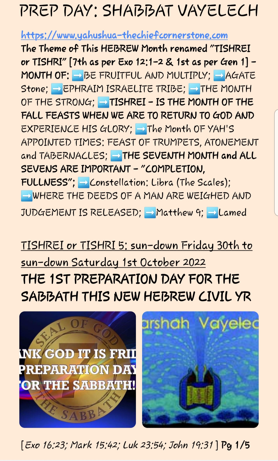 We were hoping to have shared DAY 6 OF CREATION Audios and DAY 7 OF CREATION Audios by now however it’s not been possible as yet. Please accept our apologies. We are working on it and endeavouring to share before THE UPCOMING YOM KIPPUR/DAY OF ATONEMENT [TISHRI 10: sun-down Tuesday 5th to sun-down Wednesday 6th October 2022] – SABBATH OF SABBATHS!