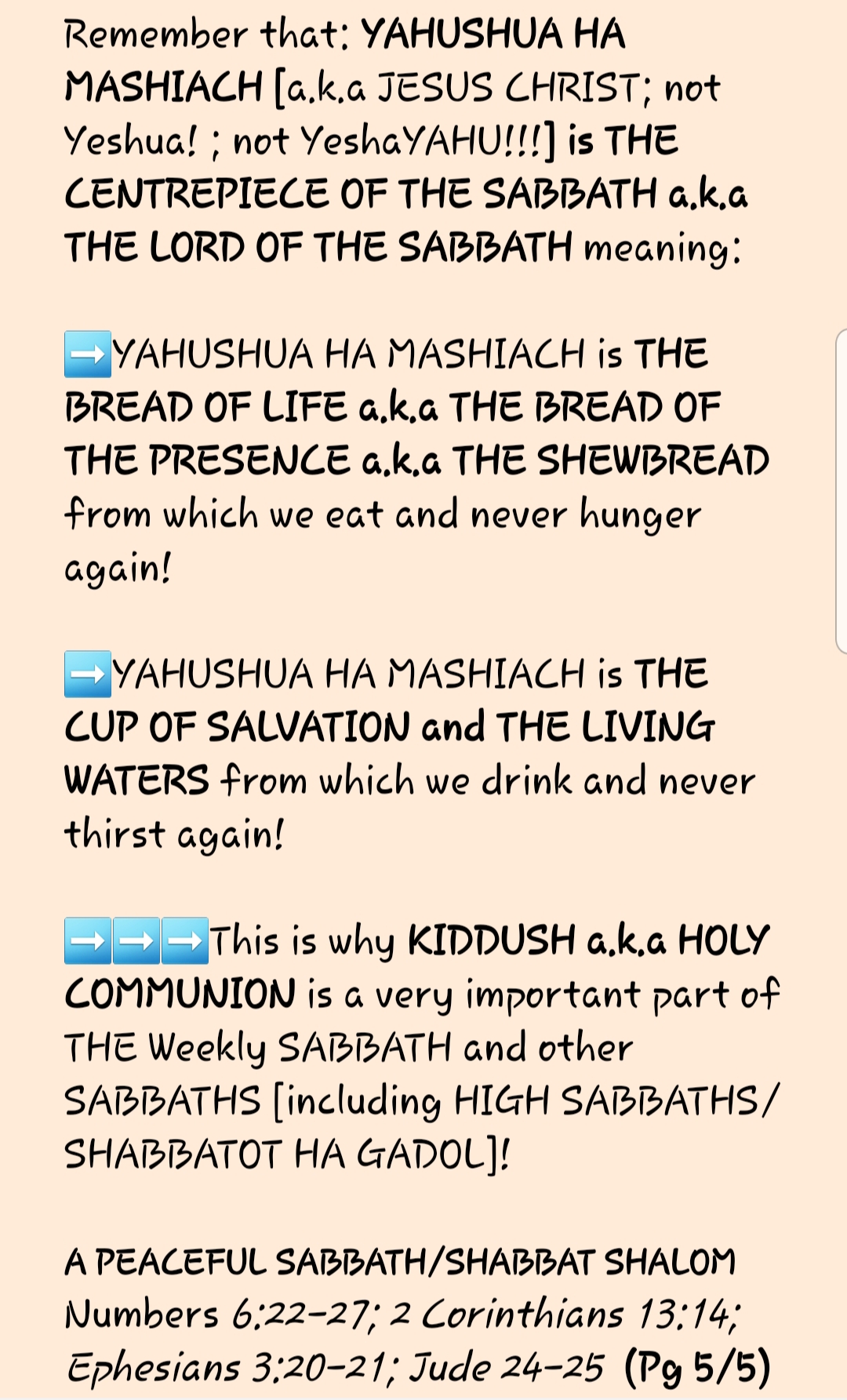 SHABBAT SHALOM Brethren in YAHUSHUA HA MASHIACH, praying that it is well with you and your family in YAHUSHUA HA MASHIACH’S NAME, AMEN!