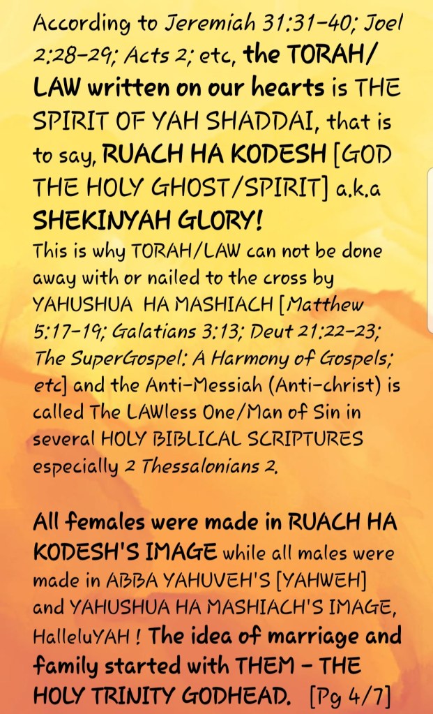 SHALOM! I am Brother Ade Israel and my wife is Sister Perpetua Shulamit. This is an online MESSIYAHNIC [MESSIANIC] HEBREW [a.k.a Jewish] PENTECOSTAL PROPHETIC MINISTRY with a HEALING/RESTORATION focus. See our TESTIMONY, VISION and MISSION STATEMENT Sections for more information on this. Welcome to our site [HOLY TEMPLE OF THE CREATOR, YAH SHADDAI without walls] created for PREACHING YAH'S GOSPEL [Matthew 28:18-20] and Sharing CRUCIAL END TIME TRUTHS [John 14:6; 8:32; Hosea 4:6]. *Please NOTE that we do not call ourselves nor anyone else who is a believer in and follower of THE ONE and ONLY TRUE MESSIAH [MASHIACH]/SAVIOUR/REDEEMER /DELIVERER who is popularly known worldwide as JESUS CHRIST [and Iesous, Jesu, Yesu, Yethu, etc] "Christian"* because we have learned through [HOLY] REVELATION from THE CREATOR/MAKER, YAH SHADDAI based on Malachai 1:1-5 and Romans 9:12-14 and Deuteronomy 12:29-32; Jeremiah 10; Ezekiel 8; etc that the terms, "Christian" and "Christianity" are Roman Vatican (Esau/Edom/Idumea) terms. *"Christian" (a tax bracket code person) actually or in fact means "A follower of the Anti-Messiah a.k.a Anti-Christ system* of Sin a.k.a Wickedness a.k.a TORAHlessness a.k.a LAWlessness System mention in 2 Thessalonians 2. *"Christianity" (a tax bracket code faith) a.k.a "Christian-Anity" is "the Vaticanisation of the Acts 2 Apostollic Foundation of Worshipping THE ONE TRUE GOD, YAH SHADDAI hence what is abominable to THE CREATOR/MAKER is widely acceptable in the name of 'the law has been done away with through nailing it to the cross', for example, Christianity encourages eating pig meat (pork, ham, bacon, etc) which is abomination as per Leviticus 11".* *Swine is a symbol of pig-mentation (skin colour) and demons love pig-mentation. Also, swine were worshiped as a deity in that location where YAHUSHUA HA MASHIACH [a.k.a JESUS CHRIST] cast the principality called "legion" out.* NOTE how the Romans introduced, established and emphasise "Easter ham" a.k.a Ishtar ham. they made it a tradition to eat pig meat 🐖 🐷 🐽 🐗 🐖 🐷 🐽 🐗 🐖 on the so-called Resurrection day of Jesus Christ, Why??? Pig meat is abomination to the LORD YAHUVEH and YAHUSHUA therefore pollutes YAH'S [GOD'S] TEMPLE (our bodies)! The Vatican is a den of demons and we are not of Rome/Esau!!!! Also, the term, "religion" = relagre = to bind back! Sadly, all roads lead back to Rome 🇮🇹 and The Vatican 🇻🇦. *Also, sadly, many of THE HOLY BIBLICAL SCRIPTURES have been Romanised and Vaticanised hence THE CREATOR/MAKER, YAH SHADDAI is calling us back to THE HEBREW ROOTS OF OUR FAITH IN HIM, HalleluYAH!* So, we call ourselves THE ORIGINAL TERM used before Roman and The Vatican changed/altered things which is: "MESSIYAHNIC [MESSIANIC] HEBREWS a.k.a JEWS"! We believe in plus followe in the footsteps of THE ONE and ONLY TRUE MESSIYAH [MESSIAH] as led by RUACH HA KODESH [HOLY SPIRIT; Not Ghost!!!] are in love with THE TORAH/LAW as per Joshua 1:8; Psalm 1; 119; Matthew 5:17-20; Colossians 2:16-17; etc. We believe in John 3:16; Romans 6:23; Isaiah 1:18-20 Matthew 28:18-20; etc as well as Acts 2; 8; etc: Genuinely Believe, Confess and Be Baptised by Immersion In Water followed➡️ by Immersion In RUACH HA KODESH then Daily Work Out Your SALVATION With Fear and Trembling [Philippians 2:12-16] while endeavouring To Be HOLY AS YAH Is HOLY [Leviticus; 1 Peter 1:16; Hebrews 12:14] and Bearing Many GOOD FRUIT FOR YAH SHADDAI [John 15; Galatians 5] !!! Once again, Welcome to our site [HOLY TEMPLE OF THE CREATOR, YAH SHADDAI without walls] created for PREACHING YAH'S GOSPEL [Matthew 28:18-20] and Sharing CRUCIAL END TIME TRUTHS [John 14:6; 8:32; Hosea 4:6]. ➡️This is our GETTR link [GETTR is the uncensored version of Twitter, just so you know] : https://gettr.com/user/yahushua7 ➡️We also have a *TELEGRAM Channel* [uncensored alternative to WhatsApp] and ➡️*MeWe* [uncensored alternative to Facebook and Instagram]! ➡️Here is our donation link if you please [if you wish to be a BLESSING to us and others in need worldwide through this online Ministry]: 📌https://www.paypal.me/AdeIsrael and/or 📌https://www.paypal.me/PNAMUTEBI ➡️Here is our donation page which explains what donations are for, if you please: https://yahushua-thechiefcornerstone.com/donations/ ➡️➡️➡️We are called and appointed by THE CREATOR, YAH SHADDAI to raise awareness of "THE JEWISH-NESS OF THE MESSIYAH [MESSIAH]" who is popularly known as JESUS CHRIST OF NAZARETH and how this affects THE BODY OF YAHUSHUA HA MASHIACH! ➡️➡️➡️THE HOLY TRINITY GODHEAD WHOM we worship are known as: 📌➡️1. GOD THE FATHER, ABBA YAHUVEH'S (a.k.a YAHWEH); 📌➡️2. GOD THE SON, YAHUSHUA [a.k.a YAHSHUA] HA MASHIACH and 📌➡️3. GOD THE MOTHER [IMMAYAH] a.k.a GOD THE HOLY SPIRIT (Not Ghost!) [RUACH HA KODESH] a.k.a SHEKINYAH GLORY [Isaiah 60:1-2; etc] a.k.a WISDOM [Proverbs 8:22-31]! Please NOTE that 2 Corinthians 13:14 is evidence of the existence of THE HOLY TRINITY GODHEAD [YAHUVEH – FATHER; YAHUSHUA HA MASHIACH – SON; IMMAYAH a.k.a SHEKINYAH GLORY – MOTHER] just as Revelation 16:13 read alongside Revelation 13 is the evidence of the existence of ⚠️the Unholy Trinity godhead (lucifer – father, Barrack Hussein Obama – son and Pope Francis a.k.a Jorge Mario Bergoglio – mother)!⚠️ There is a crucial and urgent need for increased ACKNOWLEDGEMENT/RECOGNITION and AWARENESS of the MESSIYAH [MESSIAH] JESUS CHRIST'S [Not Yeshua! ; Not YeshaYAHU!!!] HEBREW-NESS or JEWISHNESS plus how it affects us, mankind who desire to dwell with HIM for eternity. *The Left Behind during and after THE FIRST HOLY CATCHING AWAY (Not "RAPTURE" which means rape) TO THE HEAVENS will be the most affected by this issue of THE NAME OF THE MESSIAH!* It will begin to take effect during The Upcoming 3 Days and Nights of Worldwide Gross Darkness [Amos 8:9-10; Joel 2:30-32; Matthew 12:38-42; Mark 8:12; etc]. See how people gen
