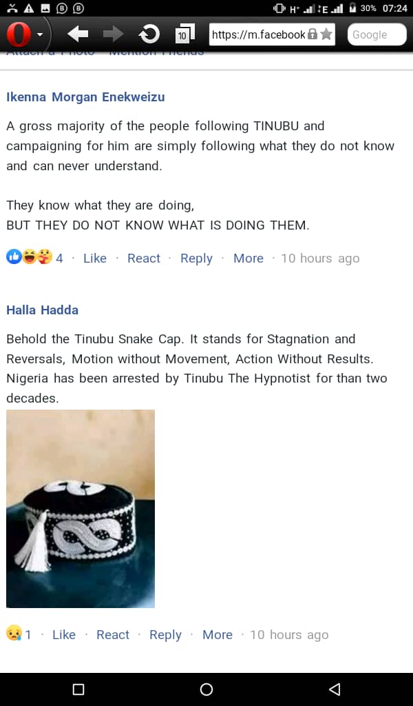 In these pictures (4 in all) attached to this message, note the symbol on all Tinubu’s hats. Tinubu is one of the Top 3 Presidential Candidates. The symbol on his hats means something bad ominous in the Spiritual realm. *Ask YAH SHADDAI to open your eyes to see what exactly is sitting on Tinubu’s head. It is not what you see in the physical realm.* He has a very evil power operating through him and the instruction to him from the kingdom of darkness (unrighteousness, instability and sorrow) is for him to continually project that symbol to the masses wherever he goes.