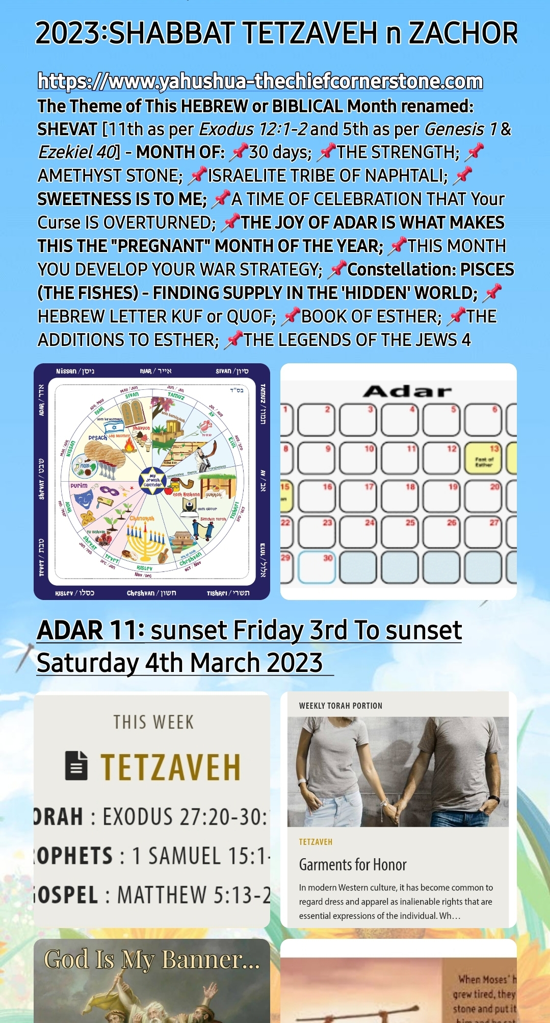 Today, Saturday 4th March 2023/ADAR 11 is SHABBAT TETZAVEH/YOU SHALL COMMAND also known as ZACHOR/REMEMBERANCE! The reason as to why this particular Weekly SABBATH has another name is that it precedes THE CREATOR/MAKER, YAH’S HOLY APPOINTED TIME called PURIM/LOTS based on THE HOLY BIBLICAL SCRIPTURE BOOK OF ESTHER/HADASSAH!