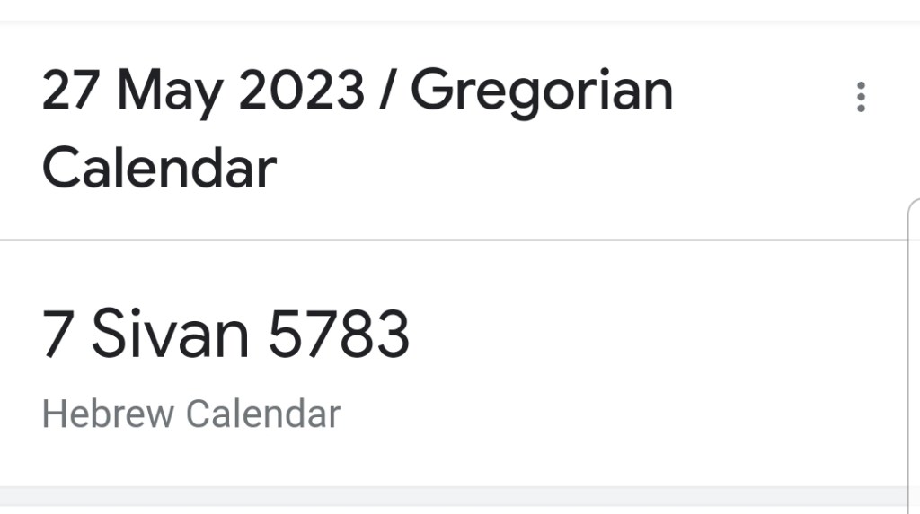 SHAVU’OT continues from sunset today and into tomorrow, Saturday 27th May 2023/SIVAN 7 [Day 2: Another High Sabbath].