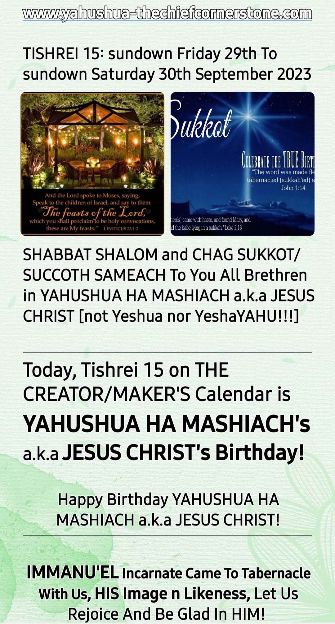 SHABBAT SHALOM and CHAG SUKKOT SAMEACH Brethren in YAHUSHUA HA MASHIACH a.k.a JESUS CHRIST!