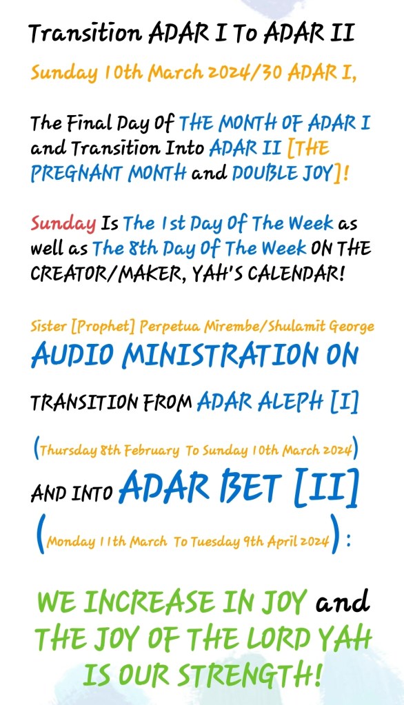 TRANSITIONING From 🔵ADAR ALEPH [I] (Thursday 8th February To Sunday 10th March 2024) and Into: