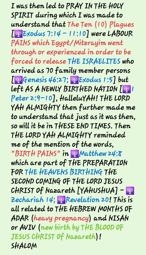 NOTE THAT I received A PROPHETIC VISION ABOUT Israel Leaving Egypt/Mitzrayim During This Ministration which led me to PRAY IN THE HOLY SPIRIT for a little while towards the end of the MINISTRATION.