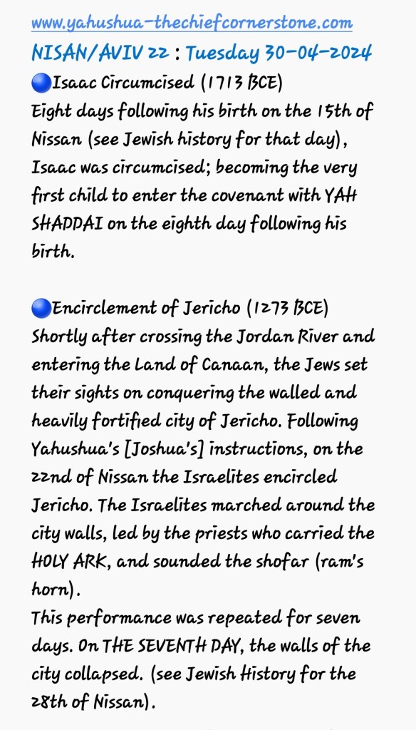 Tuesday 30th April 2024/NISAN or AVIV 22
