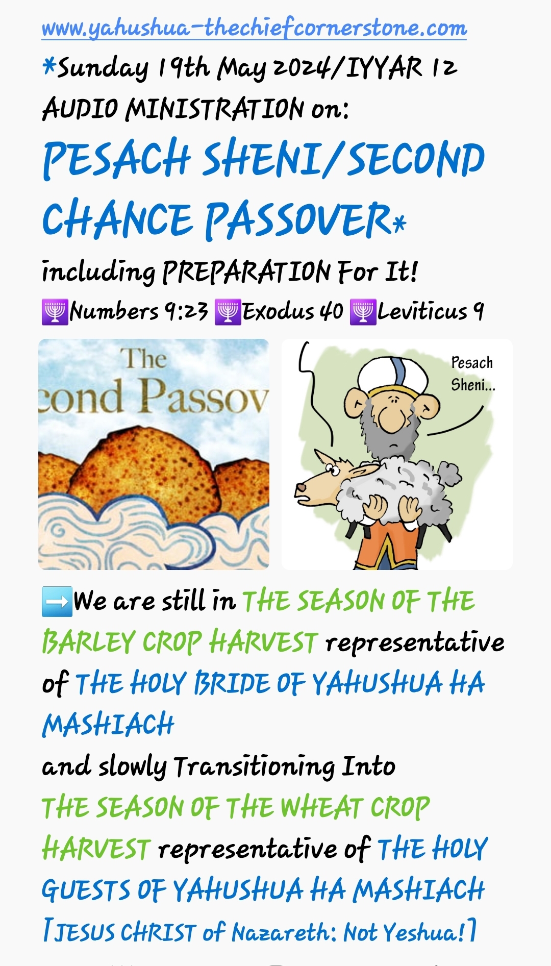 *Sunday 19th May 2024/IYYAR 12 AUDIO MINISTRATION on PESACH SHENI/SECOND CHANCE PASSOVER* by Sister [Prophet] Perpetua Mirembe/Shulamit G @[YAHUSHUA HA MASHIACH] THE CHIEF CORNERSTONE MINISTRY