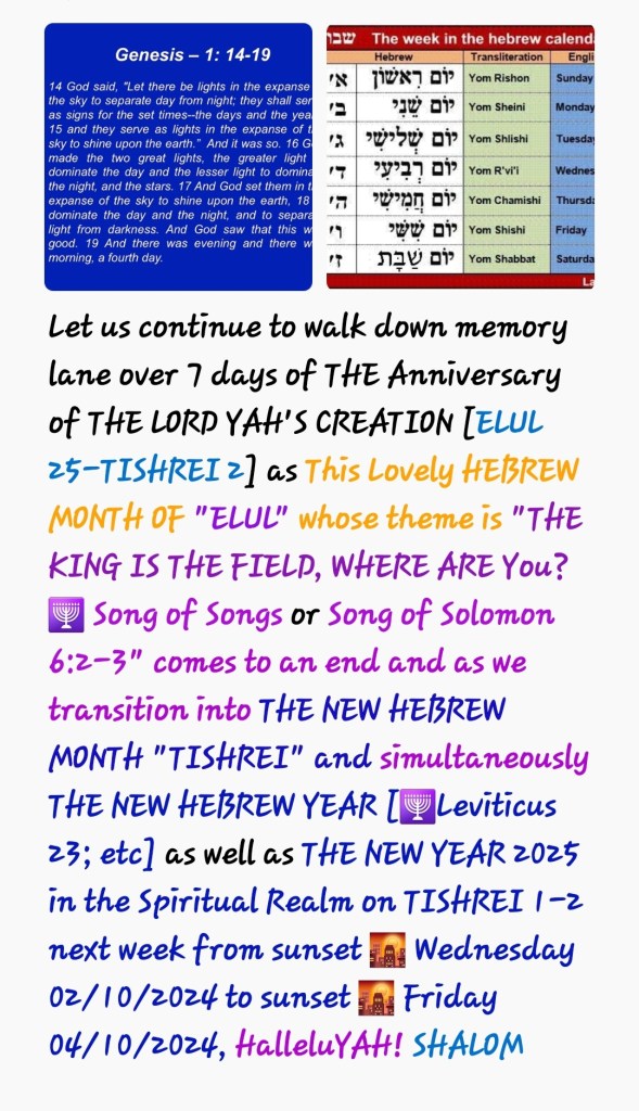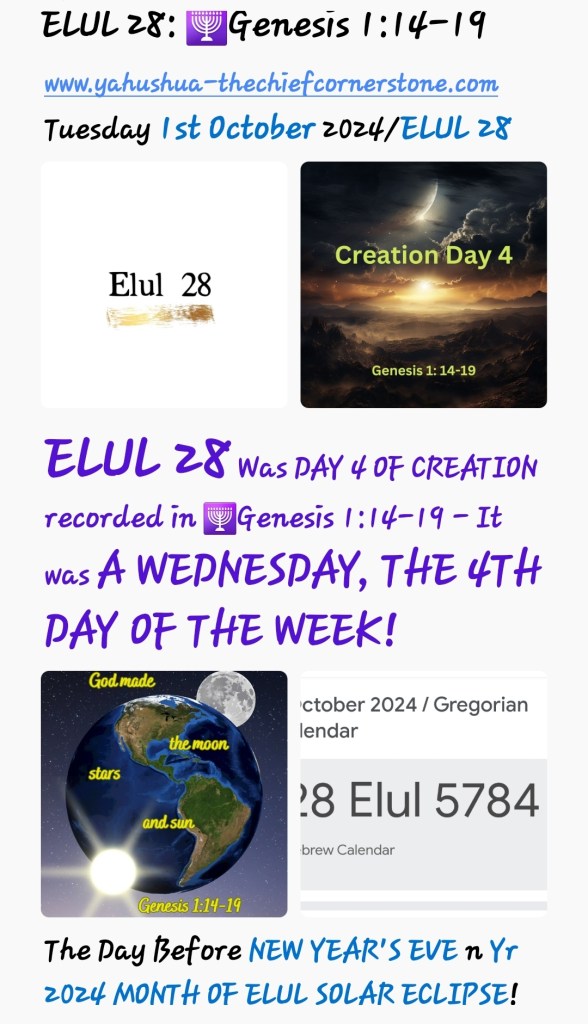 ELUL 28 on THE CREATOR GOD, YAH’S Calendar is the 4th Day of Creation as per 🕎Genesis 1:14-19, HalleluYAH!