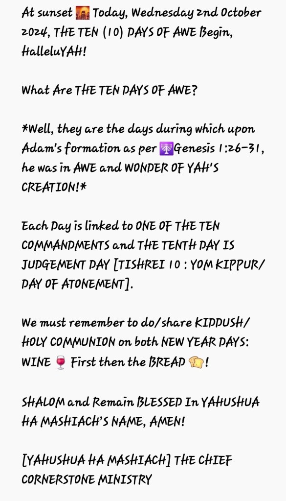 At sunset 🌇 Today, Wednesday 2nd October 2024, THE TEN (10) DAYS OF AWE Begin, HalleluYAH!