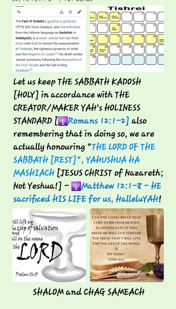 We must remember to do/share KIDDUSH/HOLY COMMUNION on both NEW YEAR DAYS: WINE 🍷 First then the BREAD 🍞!