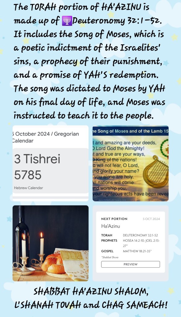 SHABBAT HA’AZINU SHALOM Brethren in YAHUSHUA HA MASHIACH [JESUS CHRIST of Nazareth; Not Yeshua!],