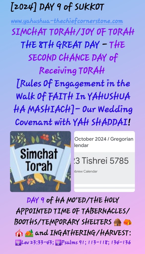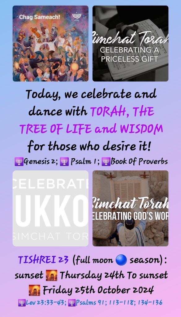 Today, SIMCHAT TORAH also marks the end of THE TORAH READING YEAR 2024. We start the new one tomorrow, Saturday 26th October 2024/TISHREI 24 keeping in mind that we are already in YEAR 2025 in the SPIRITUAL REALM!