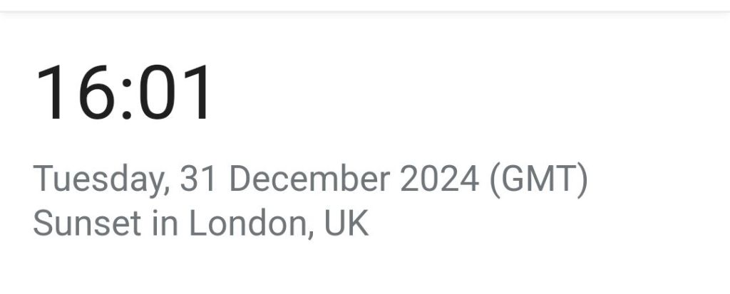 The sun 🌞 set at 4.01pm a.k.a 16.01hrs today.