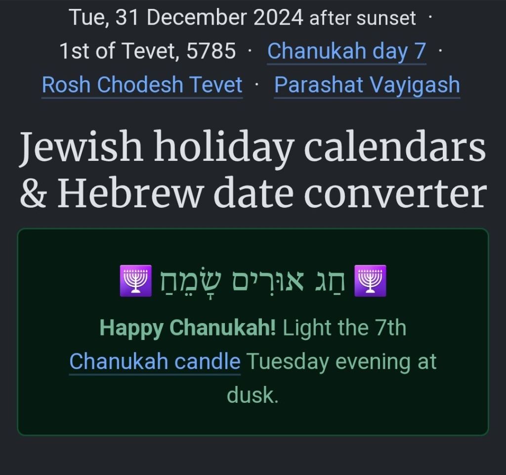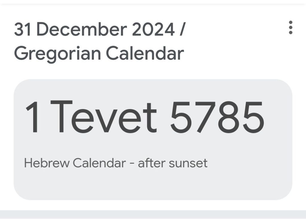 🕎 TEVET 1: sunset 🌇 Tuesday 31st December 2024 To sunset 🌇 Wednesday 1st January 2025 : ROSH CHODESH/HEAD OF THE MONTH, “TEVET”! 🌙 🌃 🌉
