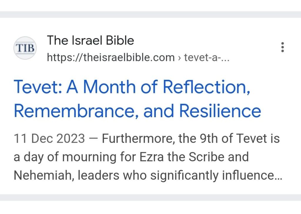 There is more to share but will stop here for now. We’ll talk more about this NEW HEBREW MONTH of “TEVET” another time.