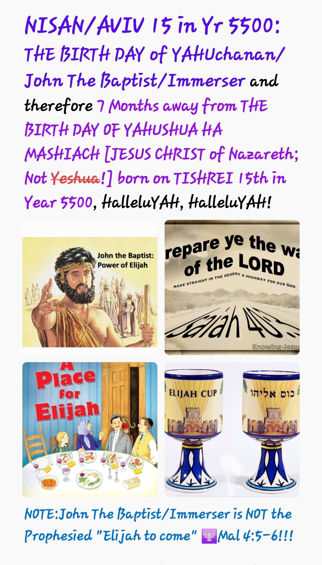 3. Birth of John/YAHUchanan The Immerser/Baptist as the The 3rd person to come in The Anointing of Prophet Elijah/Eliyahu Ha Navi.