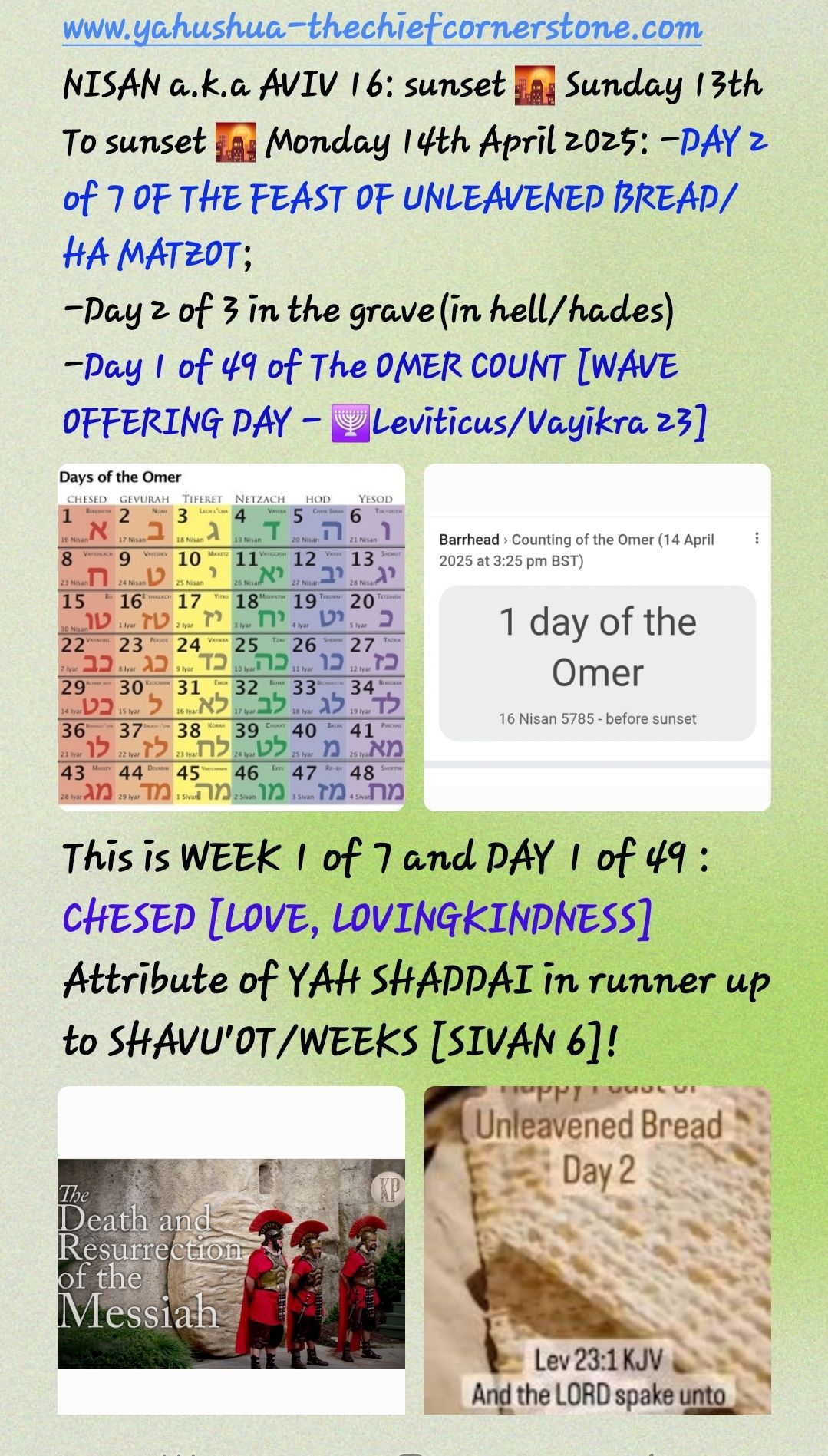 Also, CHAG HA MATZOT SAMEACH/HAPPY FEAST OF UNLEAVENED BREAD [Nisan/Aviv 15-22]!