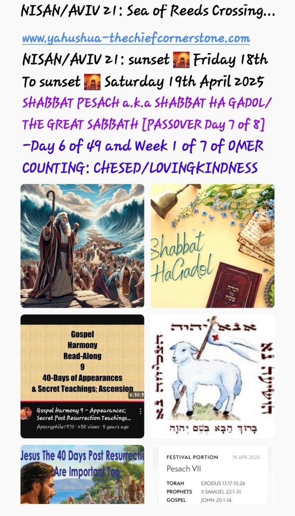[2025] NISAN/AVIV 21: SEA OF REEDS/RED SEA 🌊 CROSSING! 🕎Leviticus 23; 🕎Exodus 14-15 -Day 6 of 49 and Week 1 of 7 of THE OMER COUNTING: CHESED/LOVINGKINDNESS! -The Last/Final 40 Days of YAHUSHUA HA MASHIACH [JESUS CHRIST of Nazareth; Not Yeshua! ; Not YeshaYAHU!] On Earth in mankind form in a Glorious Body [🕎Matthew 27-28; 🕎Mark 16; 🕎Luke 24; 🕎John 20-21; 🕎 Corinthians 15]! – NISAN/AVIV 22: THE 8TH DAY and final OF THE FEAST OF UNLEAVENED BREAD a foreshadow of THE FUTURE [🕎Revelation 20-22! [sunset 🌇 Friday 18th To sunset 🌇 Saturday 19th April 2025]
