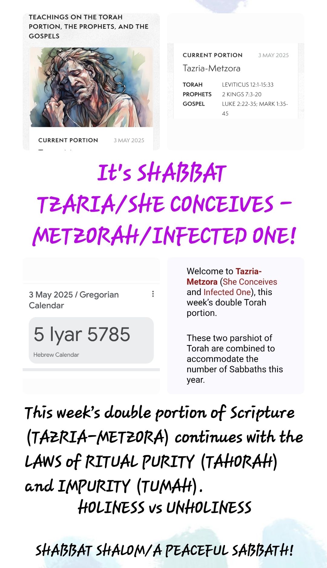 SHABBT TZARIA/SHE CONCEIVES-METZORA/INFECTED ONE