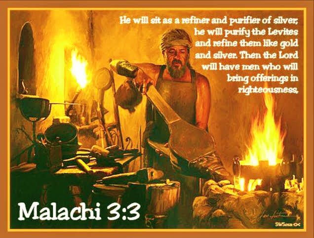 [1] Behold, I will send my messenger, and he shall prepare the way before me: and THE LORD, whom ye seek, shall suddenly come to his temple, even the messenger of the covenant, whom ye delight in: behold, he shall come, saith the LORD of hosts. ➡️[2] But who may abide the day of his coming? and who shall stand when he appeareth? for he is like a refiner’s fire, and like fullers’ soap:⬅️ [3] and he shall sit as a refiner and purifier of silver: and he shall purify the sons of Levi, and purge them as gold and silver, that they may offer unto the LORD an offering in righteousness.