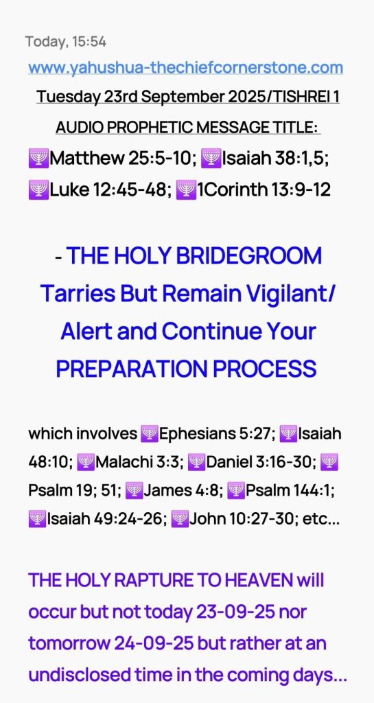 You are being encouraged in advance to be very well prepared for what is to come whether it happens on 23rd-24th September 2025/TISHREI 1-2 or not because it will happen definitely happen sonetime soon most likely before the end of September 2025!!! Don’t lose FAITH IN YAH SHADDAI and go back to life as normal!