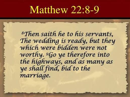 THE LAMB’S Wedding Feast Invitation is still open to a certain extent but only for a short time. 🕎Matthew 22:1-14; 🕎Revelation 19.